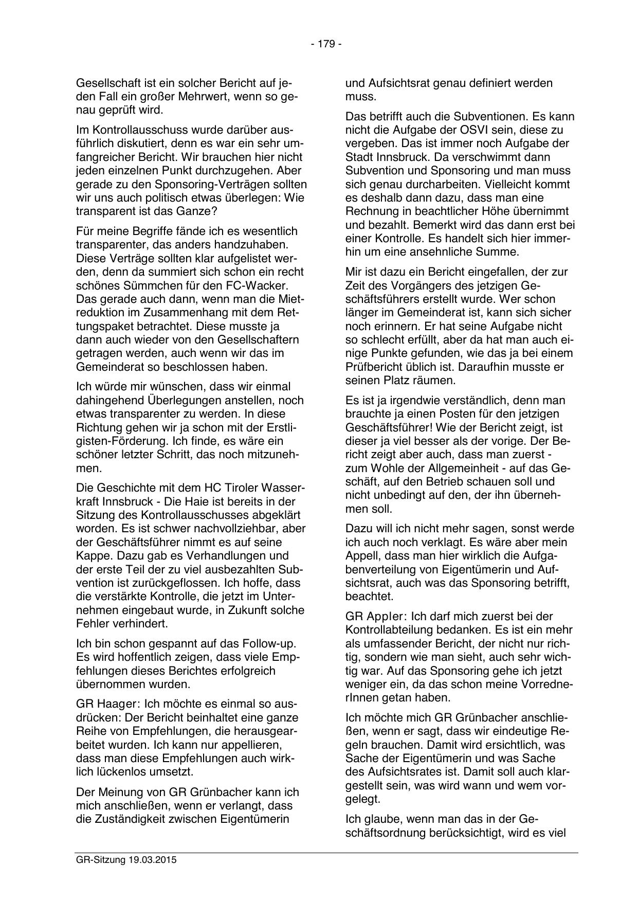Ich möchte mich GR Grünbacher anschließen, wenn er sagt, dass wir eindeutige Regeln brauchen. Damit wird ersichtlich, was