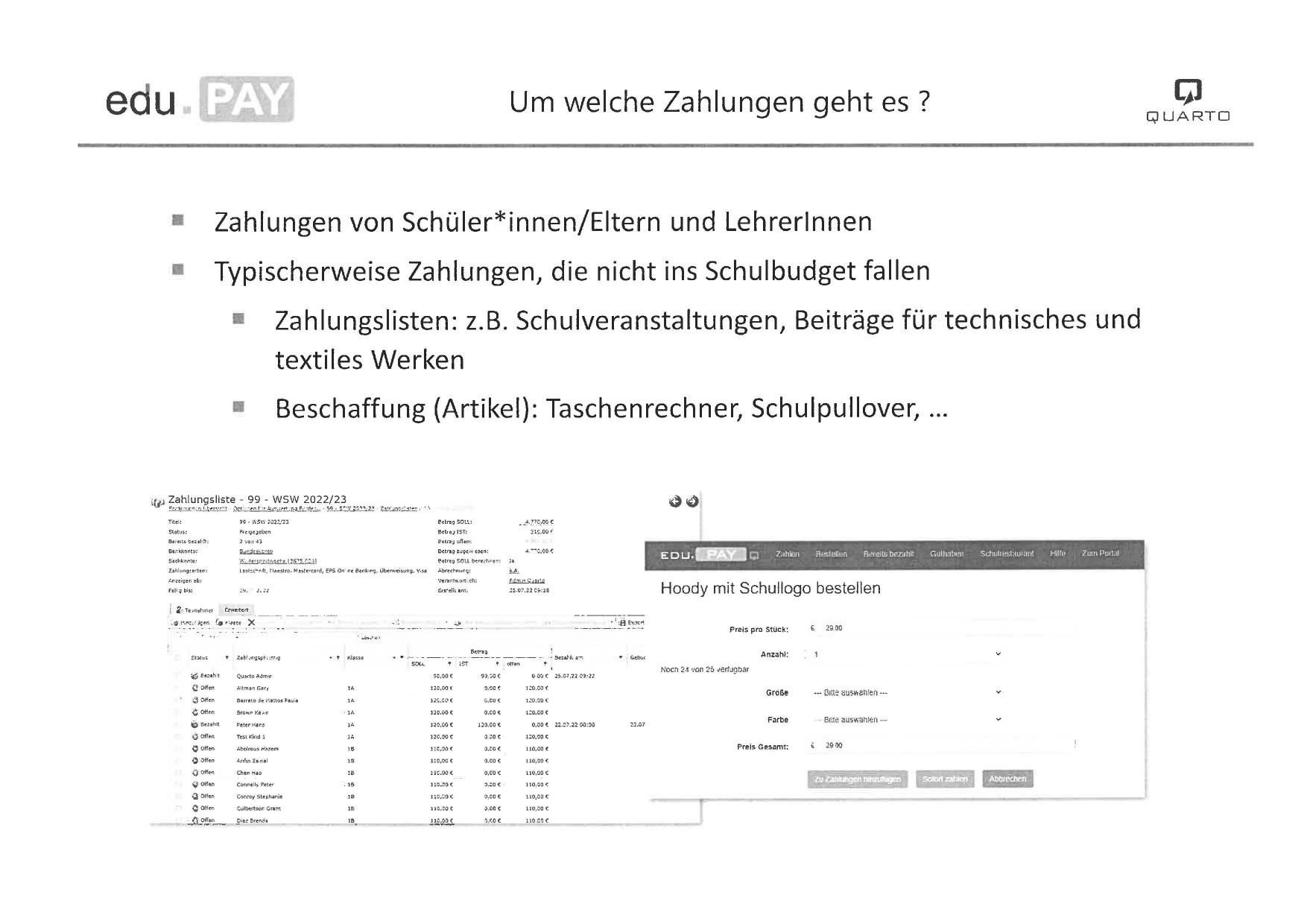 Zahlungslisten: z.B. Schulveranstaltungen, Beiträge für technisches und