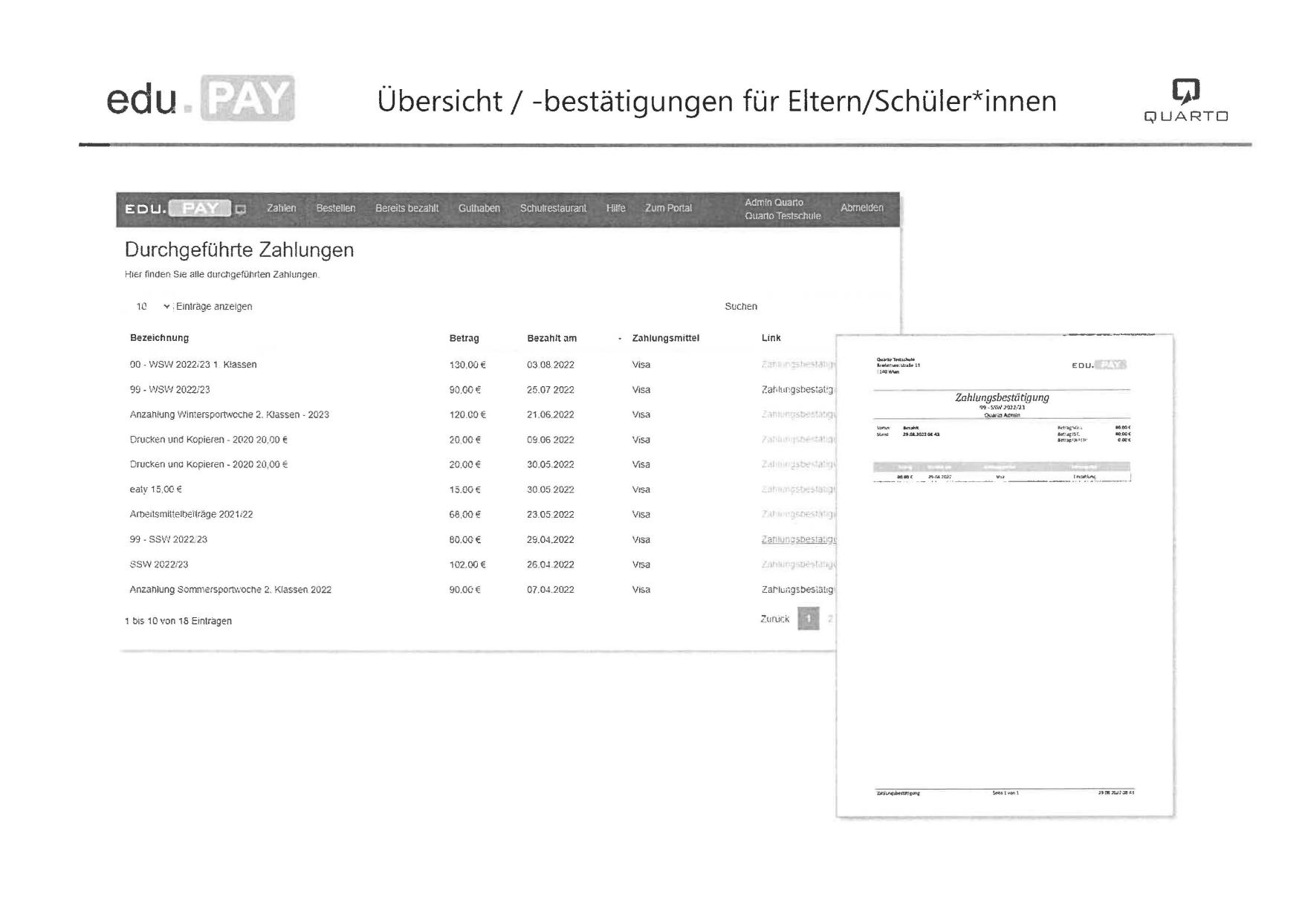 Übersicht/ -bestätigungen für Eltern/Schüler*innen