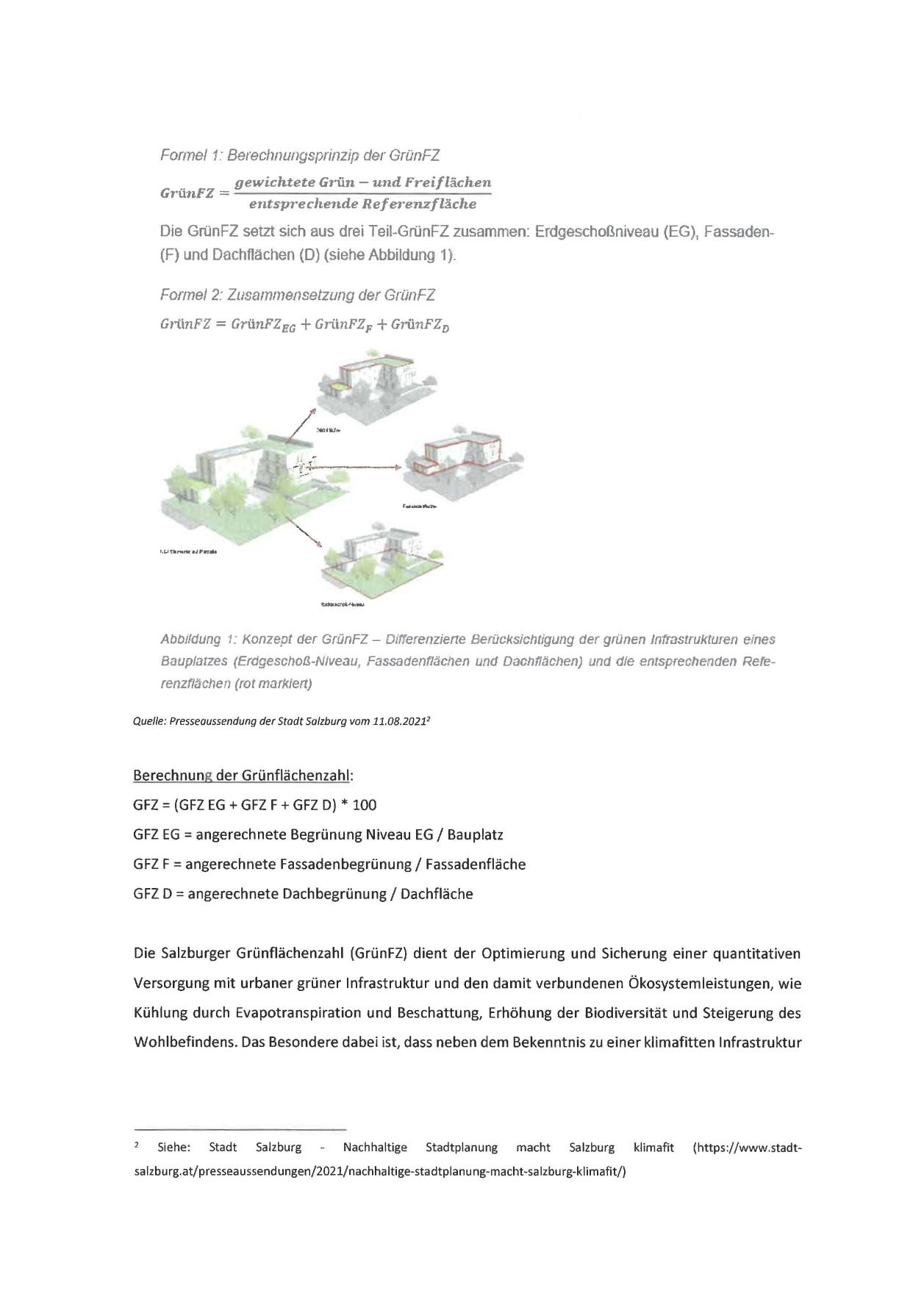Die Salzburger Grünflächenzahl (GrünFZ) dient der Optimierung und Sicherung einer quantitativen