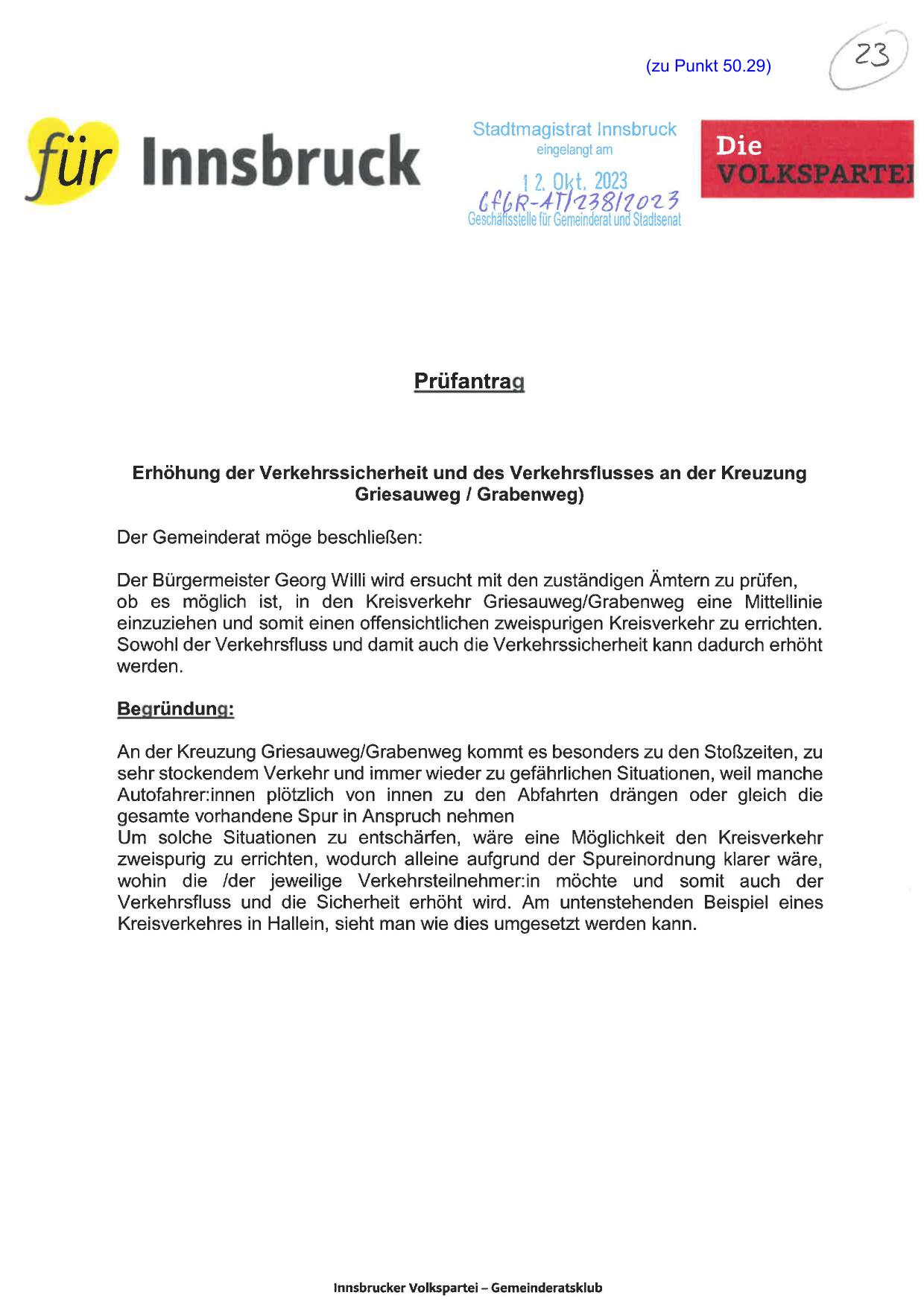 Der Bürgermeister Georg Willi wird ersucht mit den zuständigen Ämtern zu prüfen,