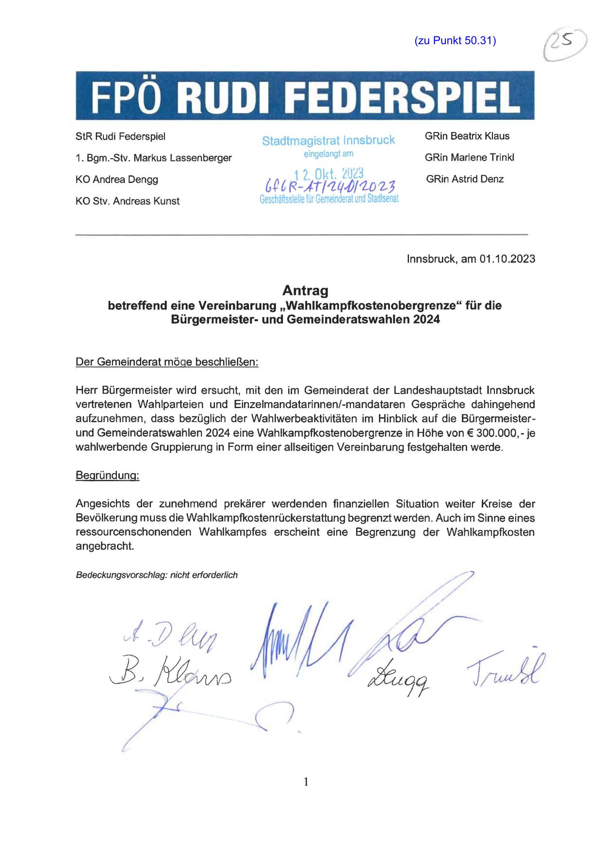 Herr Bürgermeister wird ersucht, mit den im Gemeinderat der Landeshauptstadt Innsbruck