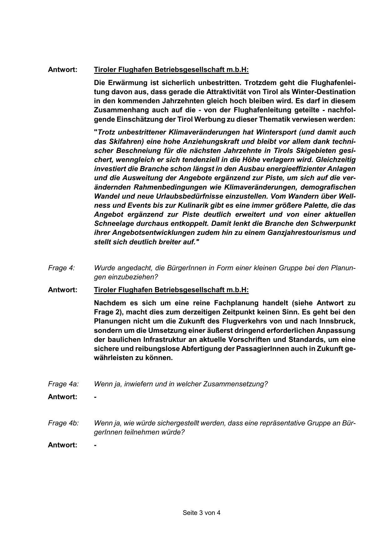 Planungen nicht um die Zukunft des Flugverkehrs von und nach Innsbruck,