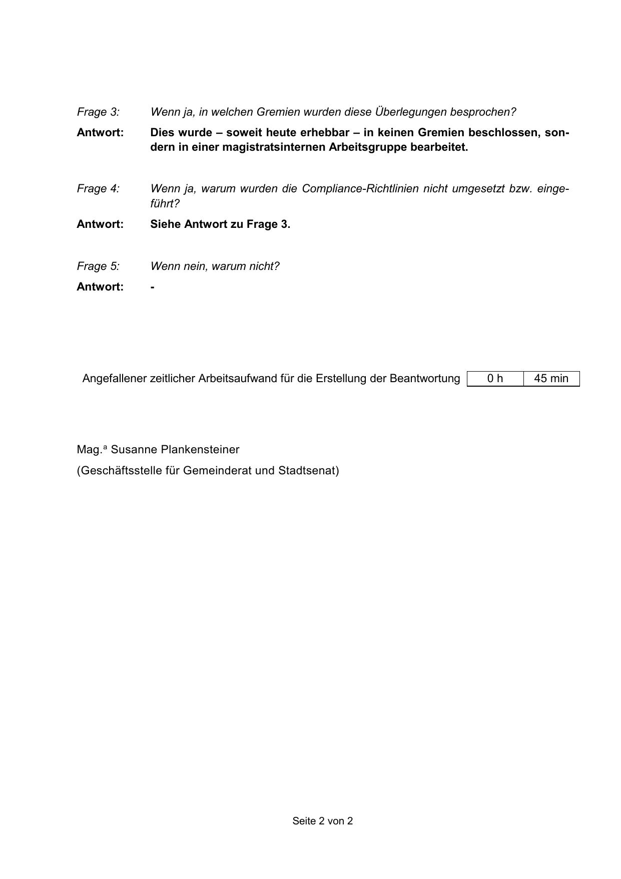Angefallener zeitlicher Arbeitsaufwand für die Erstellung der Beantwortung