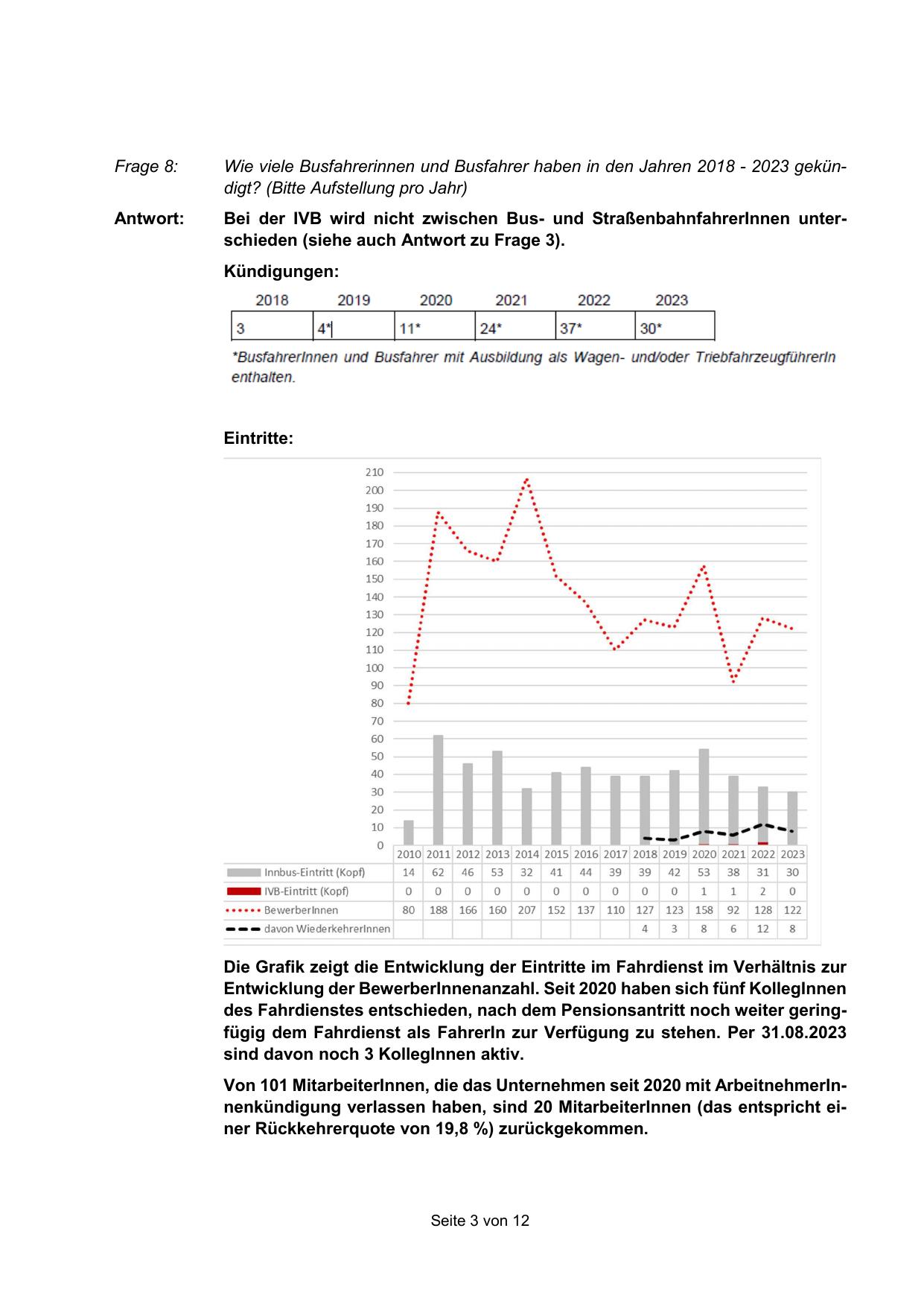 Wie viele Busfahrerinnen und Busfahrer haben in den Jahren 2018 - 2023 gekündigt? (Bitte Aufstellung pro Jahr)