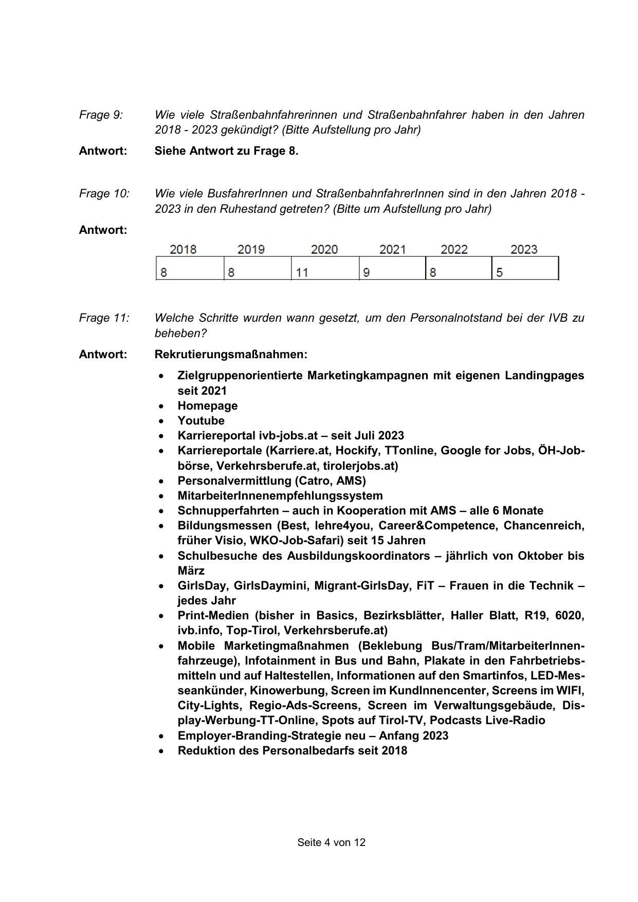 Welche Schritte wurden wann gesetzt, um den Personalnotstand bei der IVB zu