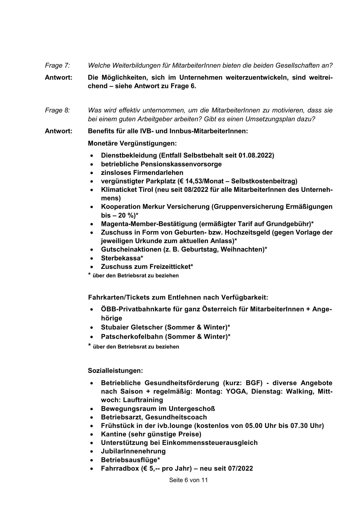 Benefits für alle IVB- und Innbus-MitarbeiterInnen: