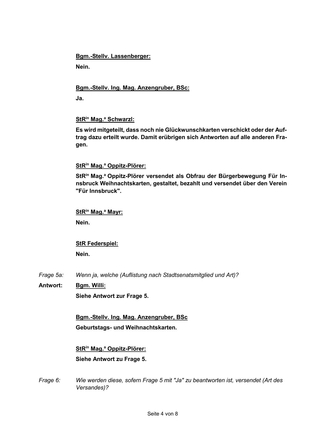 StRin Mag.a Oppitz-Plörer versendet als Obfrau der Bürgerbewegung Für Innsbruck Weihnachtskarten, gestaltet, bezahlt und versendet über den Verein