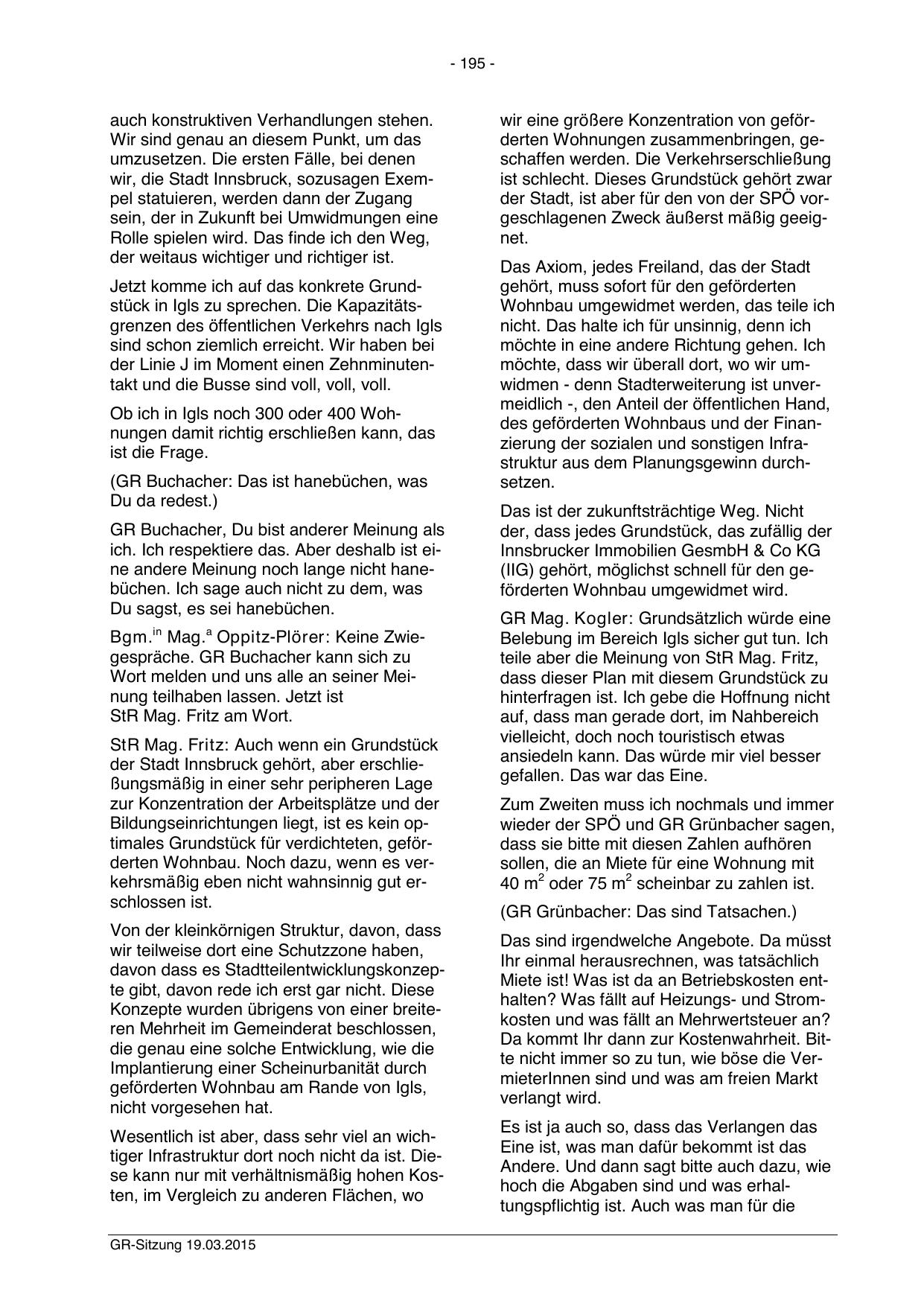 Bgm.in Mag.a Oppitz-Plörer: Keine Zwiegespräche. GR Buchacher kann sich zu