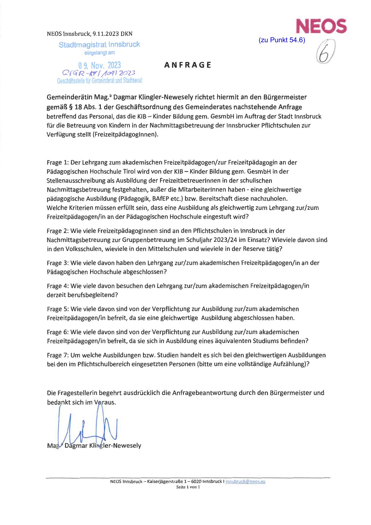 NEOS Innsbruck, 9. 11. 2023 DKN