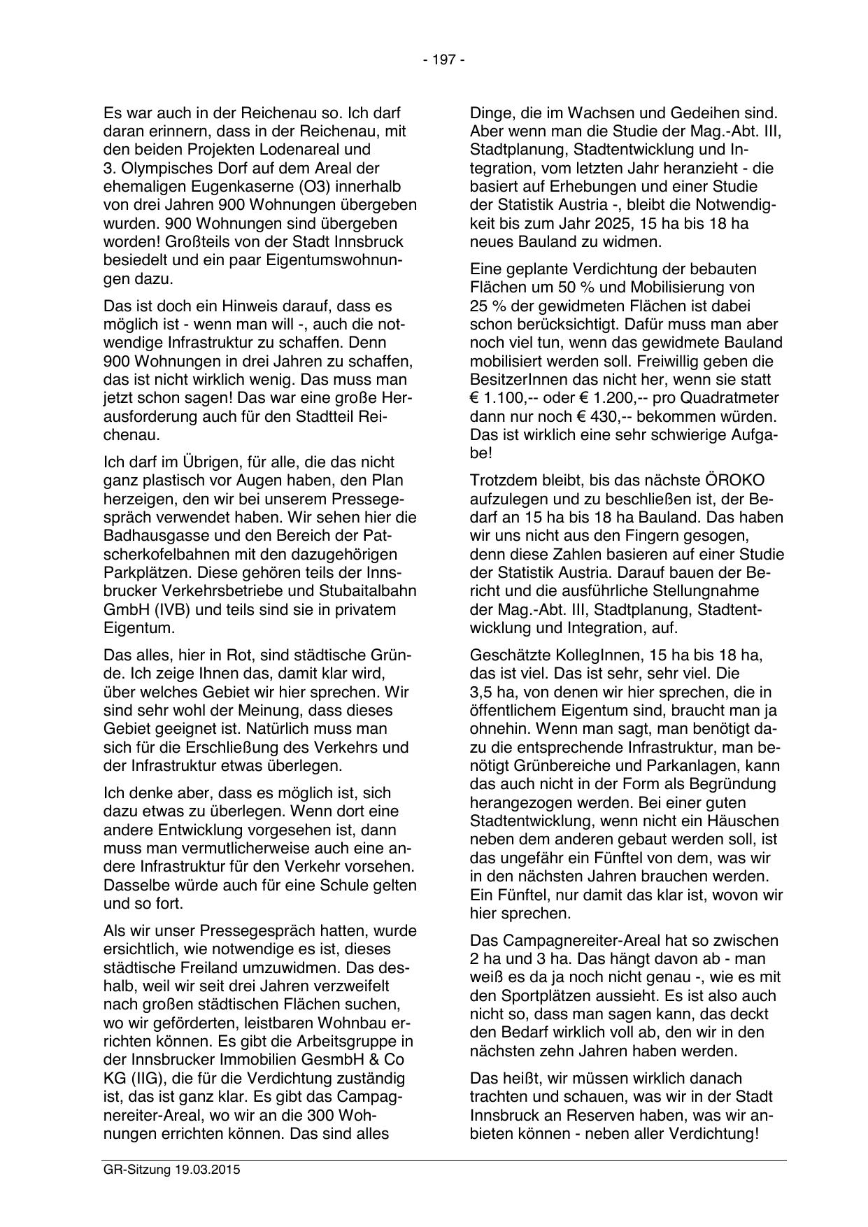 Innsbruck an Reserven haben, was wir anbieten können - neben aller Verdichtung!