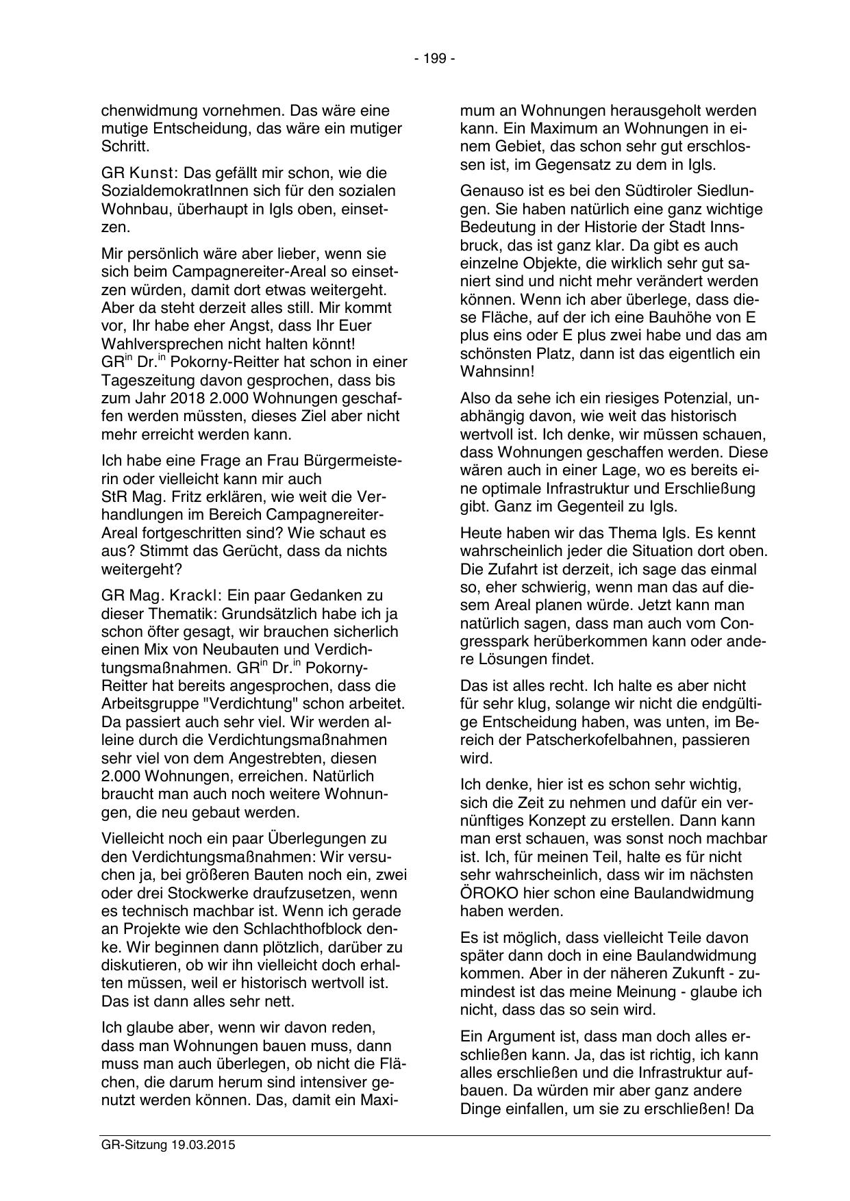 kann. Ein Maximum an Wohnungen in einem Gebiet, das schon sehr gut erschlossen ist, im Gegensatz zu dem in Igls.