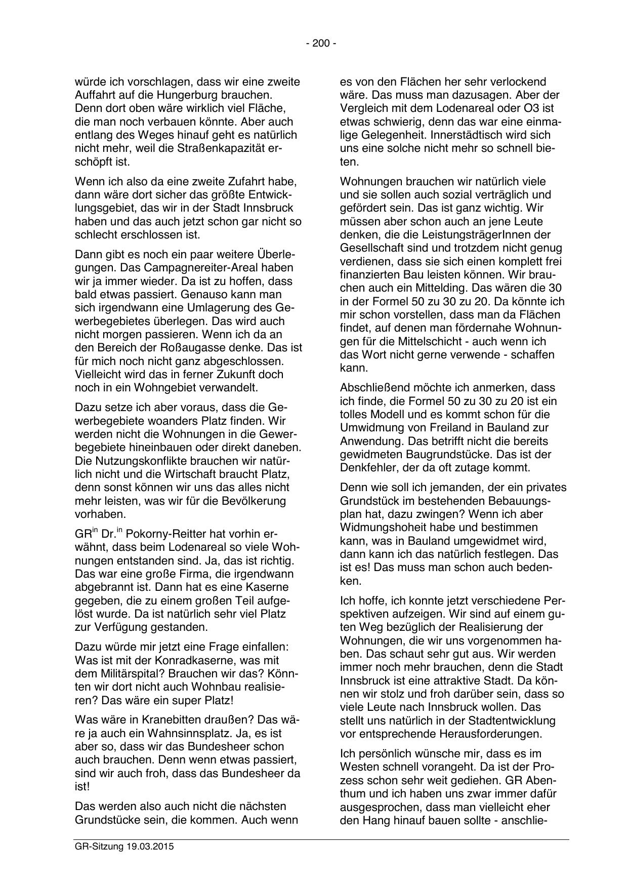 dann wäre dort sicher das größte Entwicklungsgebiet, das wir in der Stadt Innsbruck