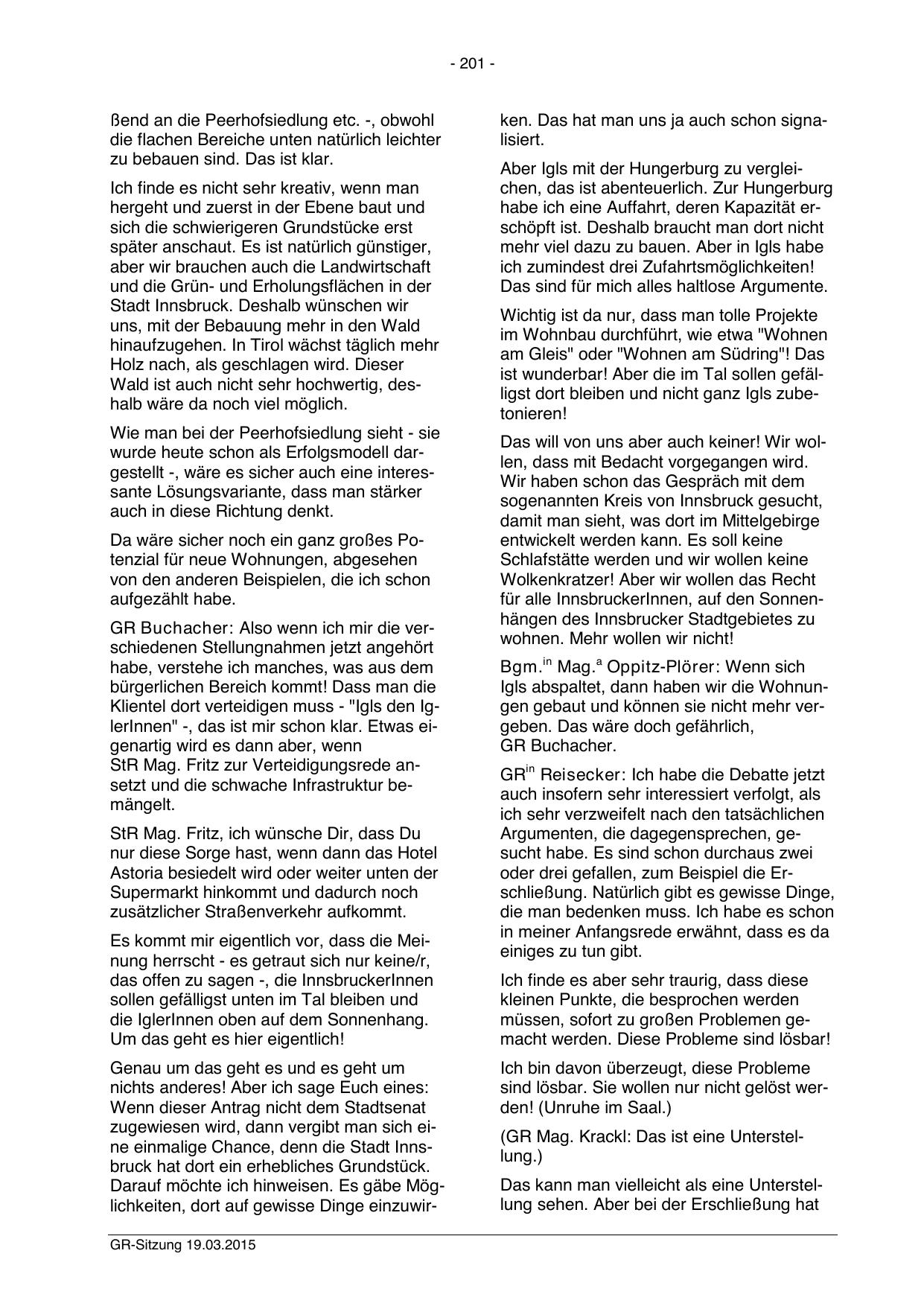 Darauf möchte ich hinweisen. Es gäbe Möglichkeiten, dort auf gewisse Dinge einzuwirGR-Sitzung 19.03.2015