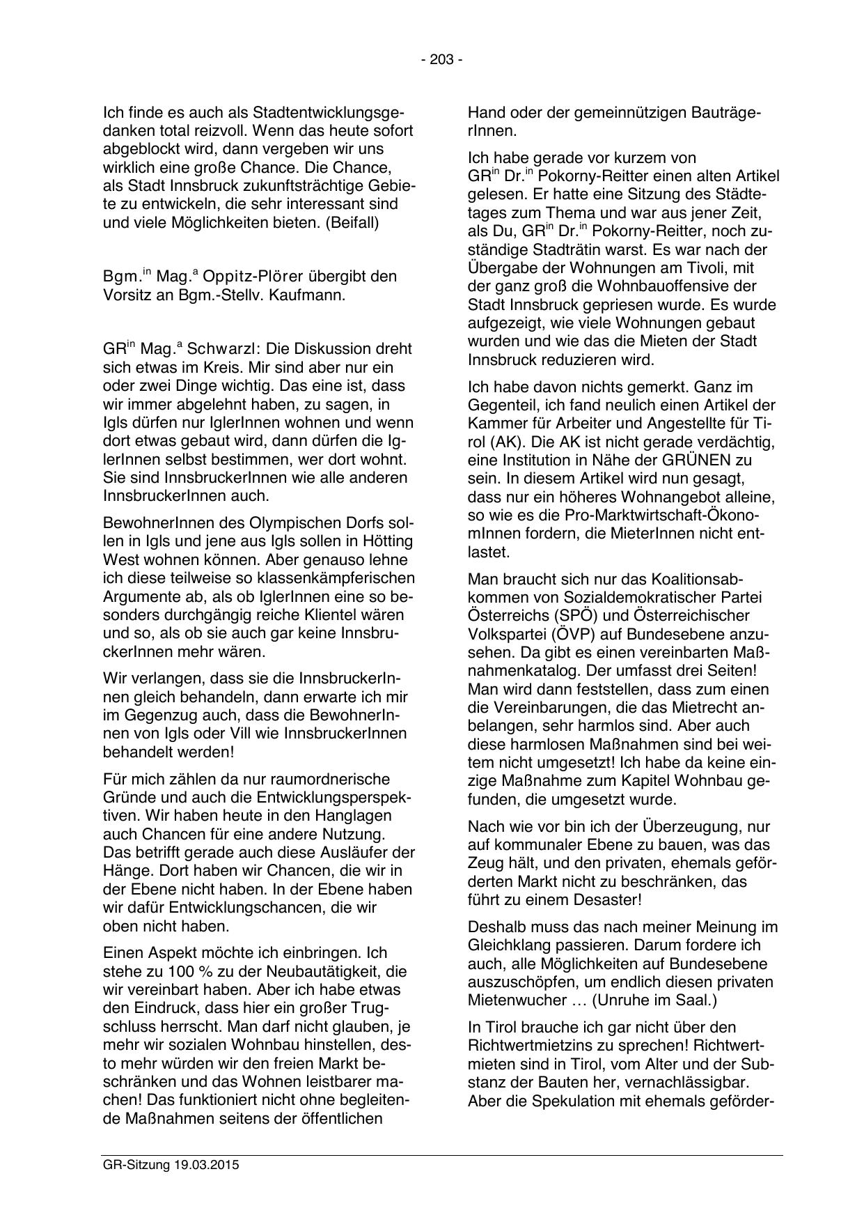 Wir verlangen, dass sie die InnsbruckerInnen gleich behandeln, dann erwarte ich mir