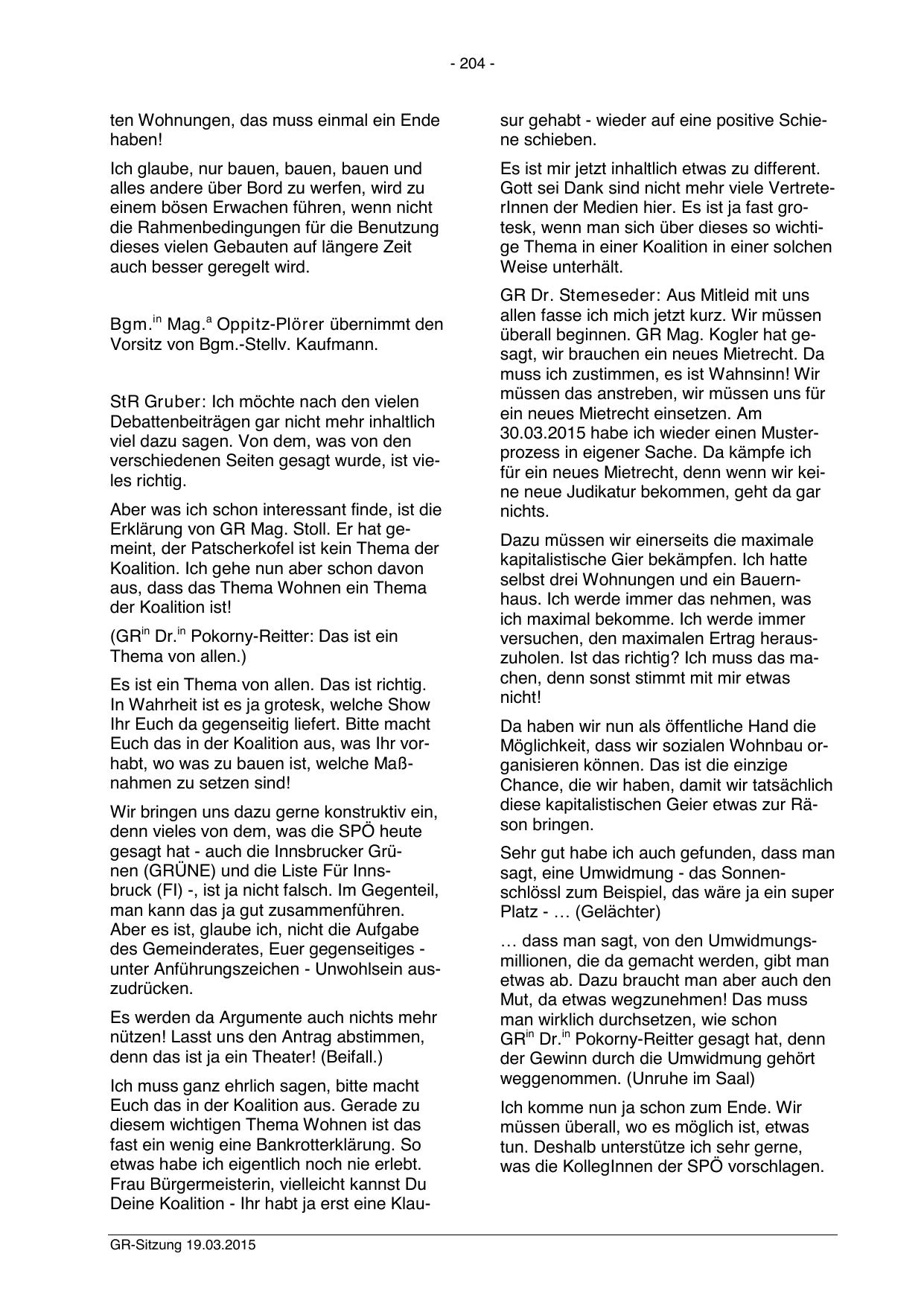 Erklärung von GR Mag. Stoll. Er hat gemeint, der Patscherkofel ist kein Thema der