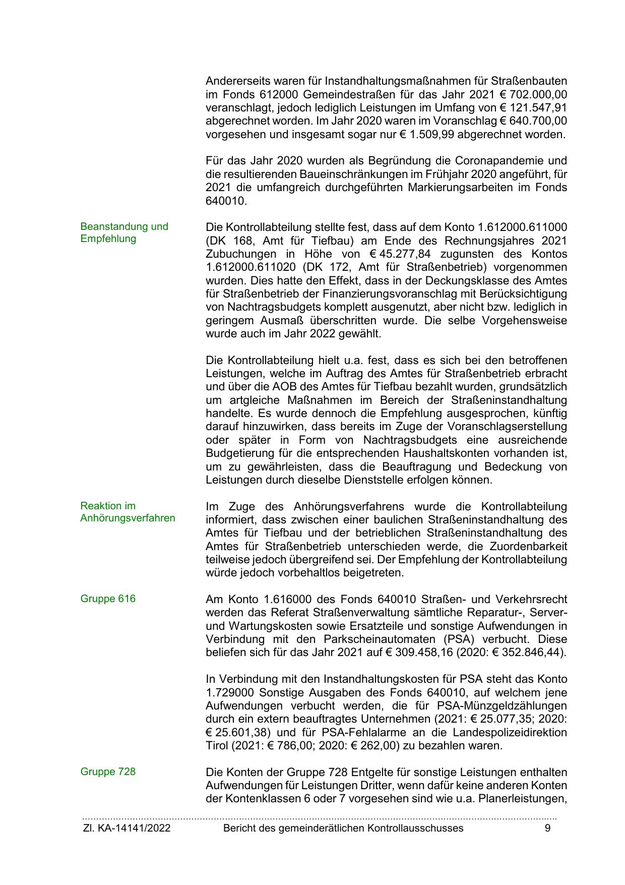 Am Konto 1.616000 des Fonds 640010 Straßen- und Verkehrsrecht