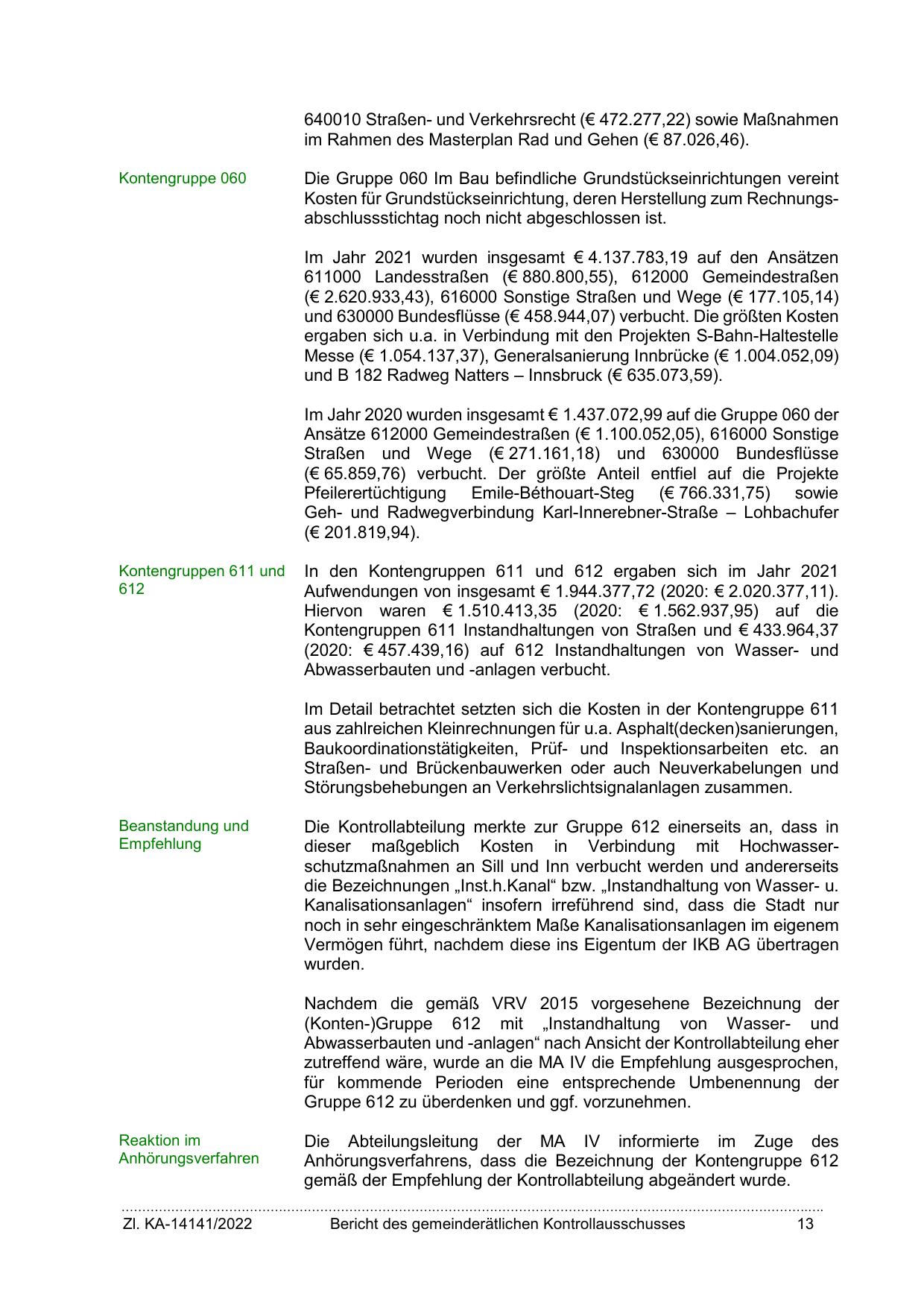 Kontengruppen 611 Instandhaltungen von Straßen und € 433.964,37