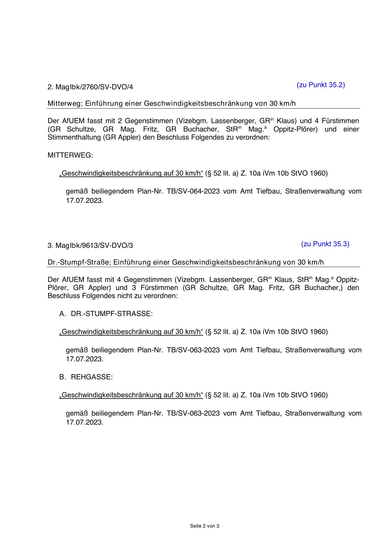 Der AfUEM fasst mit 4 Gegenstimmen (Vizebgm. Lassenberger, GRin Klaus, StRin Mag.a OppitzPlörer, GR Appler) und 3 Fürstimmen (GR Schultze, GR Mag. Fritz, GR Buchacher,) den