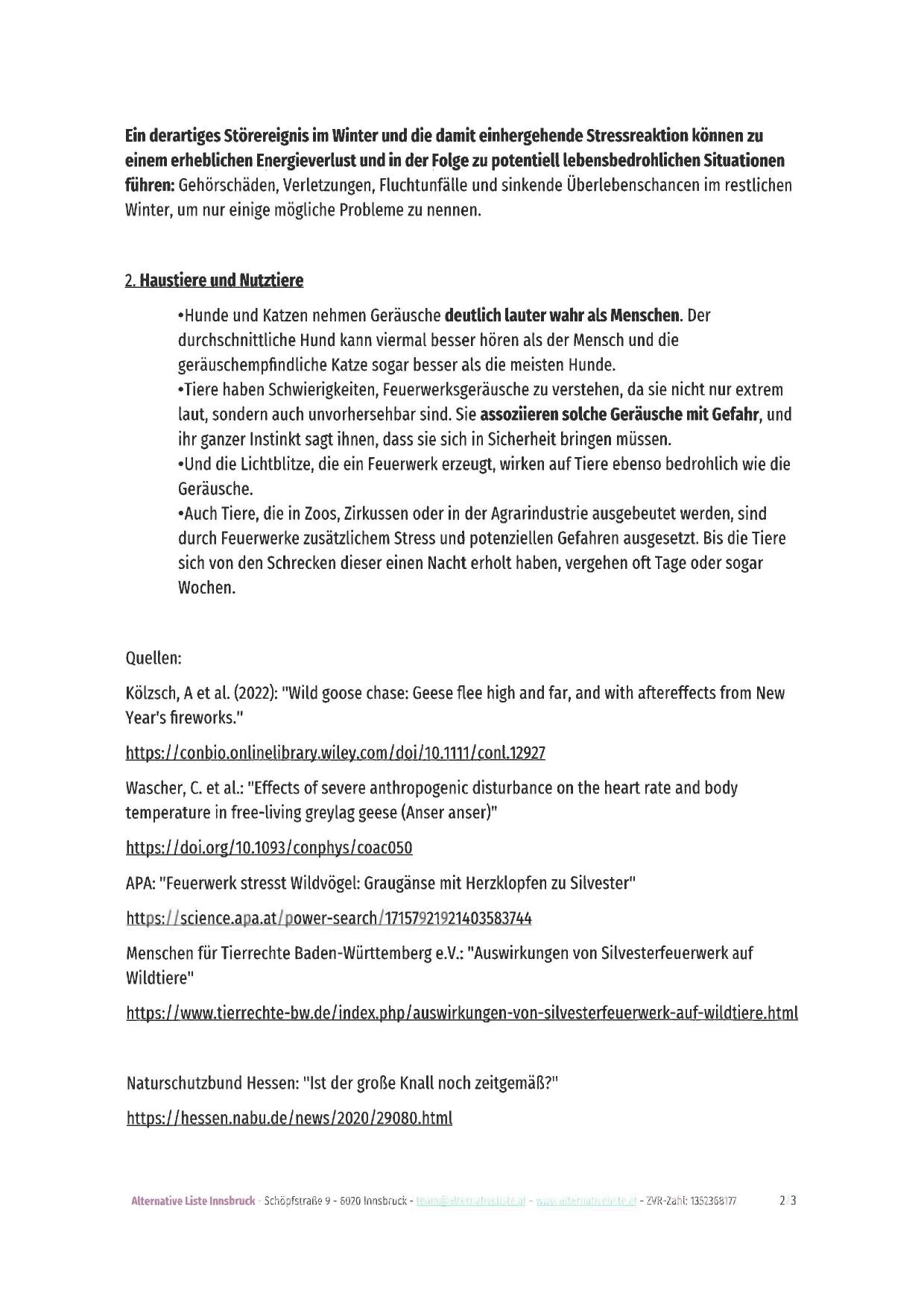 Menschen für Tierrechte Baden-Württemberg e.V.: "Auswirkungen von Silvesterfeuerwerk auf