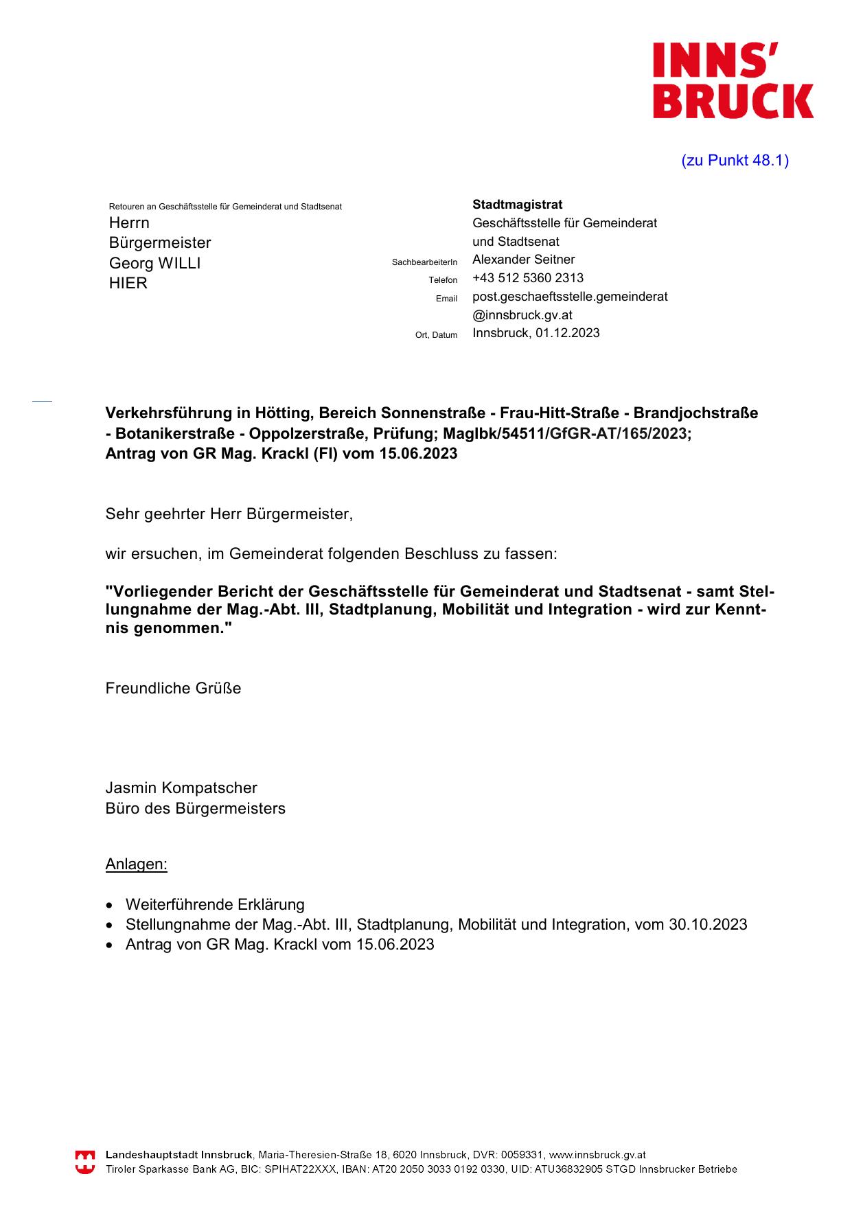 - Botanikerstraße - Oppolzerstraße, Prüfung; MagIbk/54511/GfGR-AT/165/2023;
