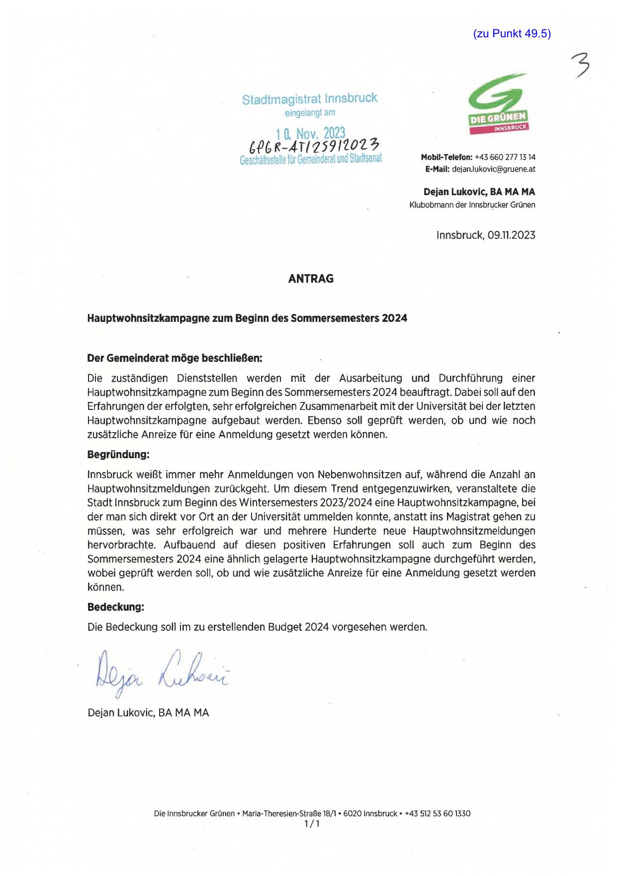 Stadt Innsbruck zum Beginn des Wintersemesters 2023/2024 eine Hauptwohnsitzkampagne, bei