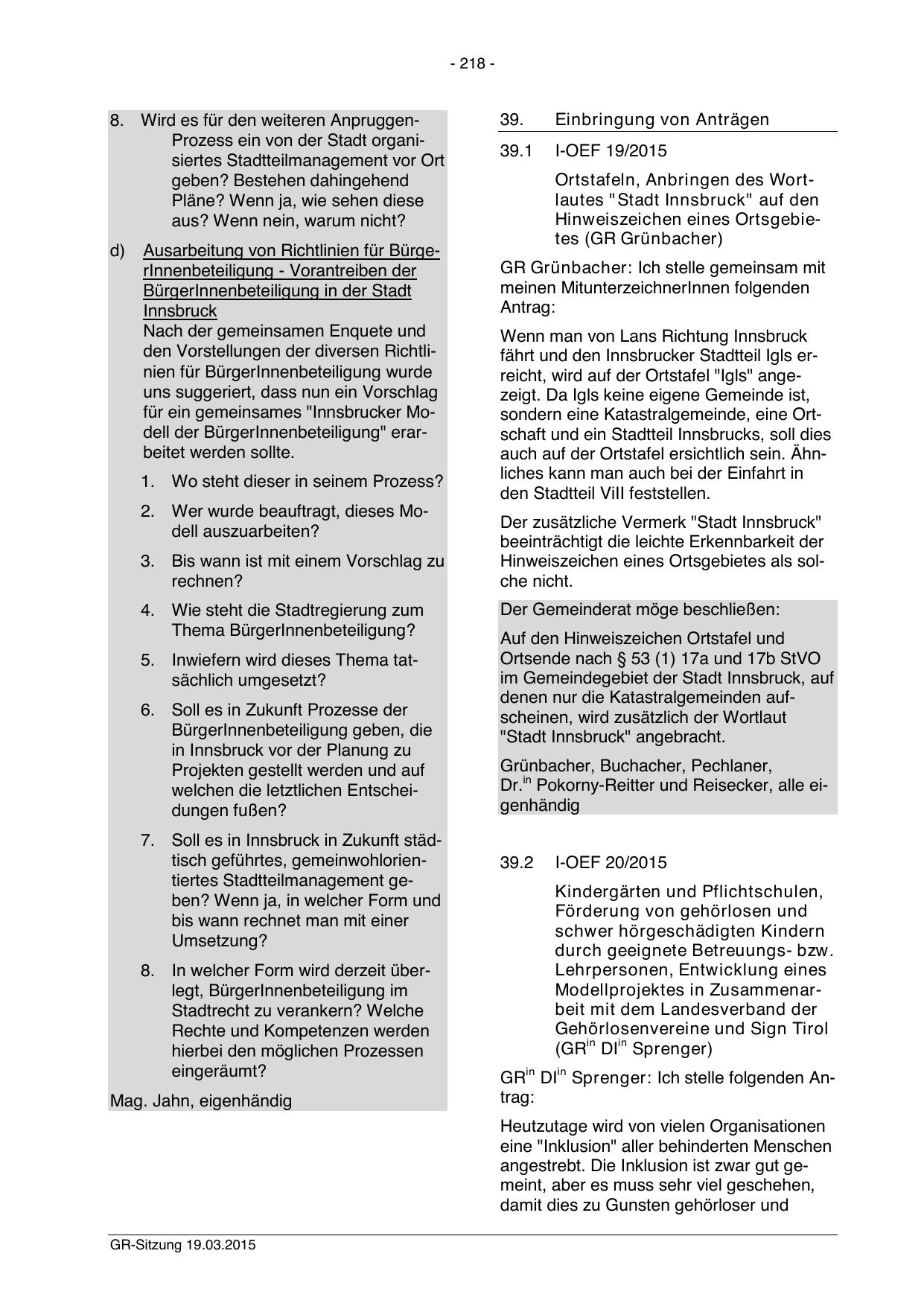 für ein gemeinsames "Innsbrucker Modell der BürgerInnenbeteiligung" erarbeitet werden sollte.