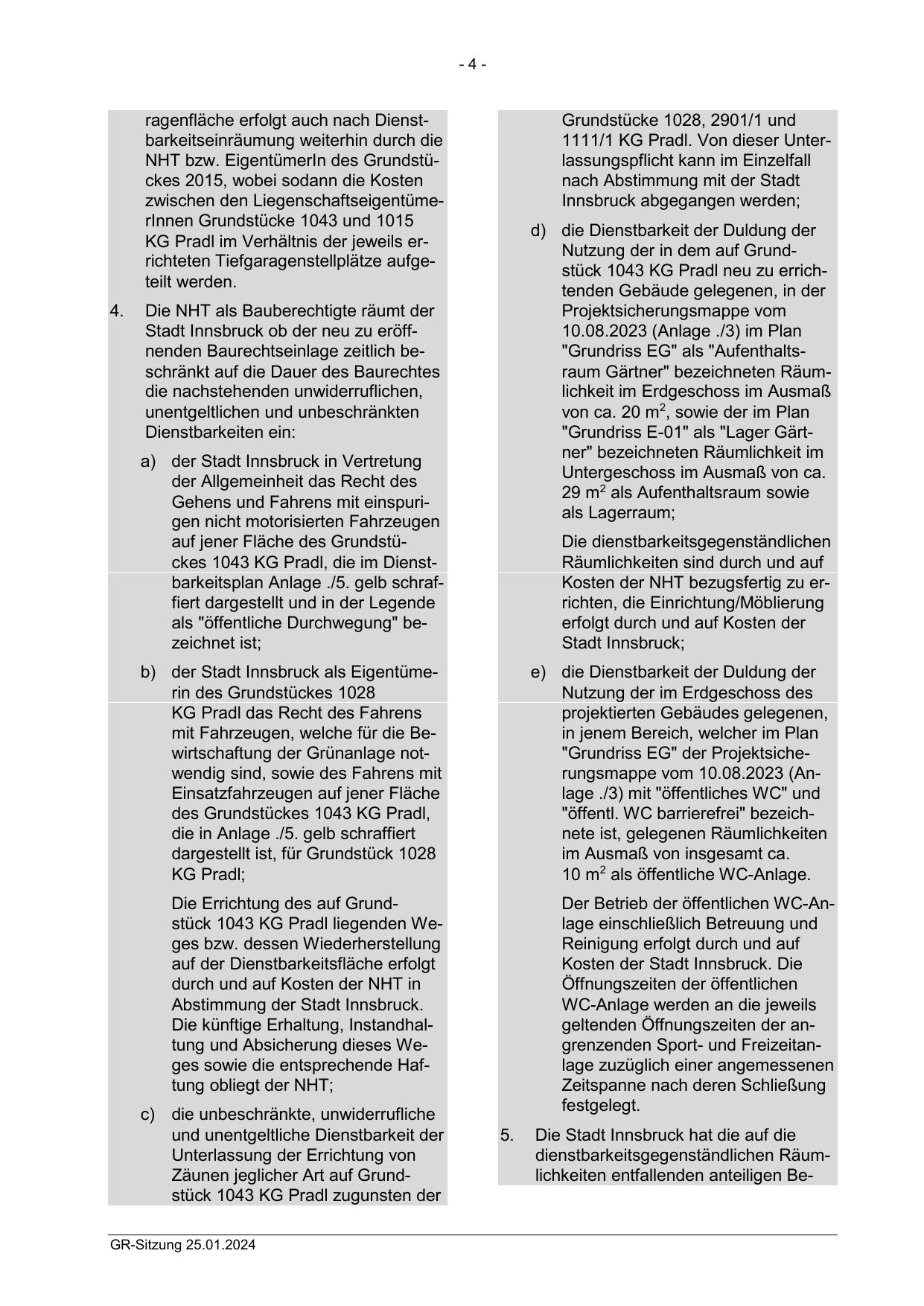 Nutzung der in dem auf Grundstück 1043 KG Pradl neu zu errichtenden Gebäude gelegenen, in der