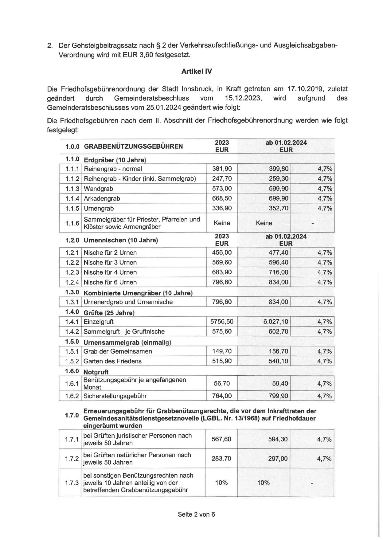 Die Friedhofsgebührenordnung der Stadt Innsbruck, in Kraft getreten am 17.10.2019, zuletzt
