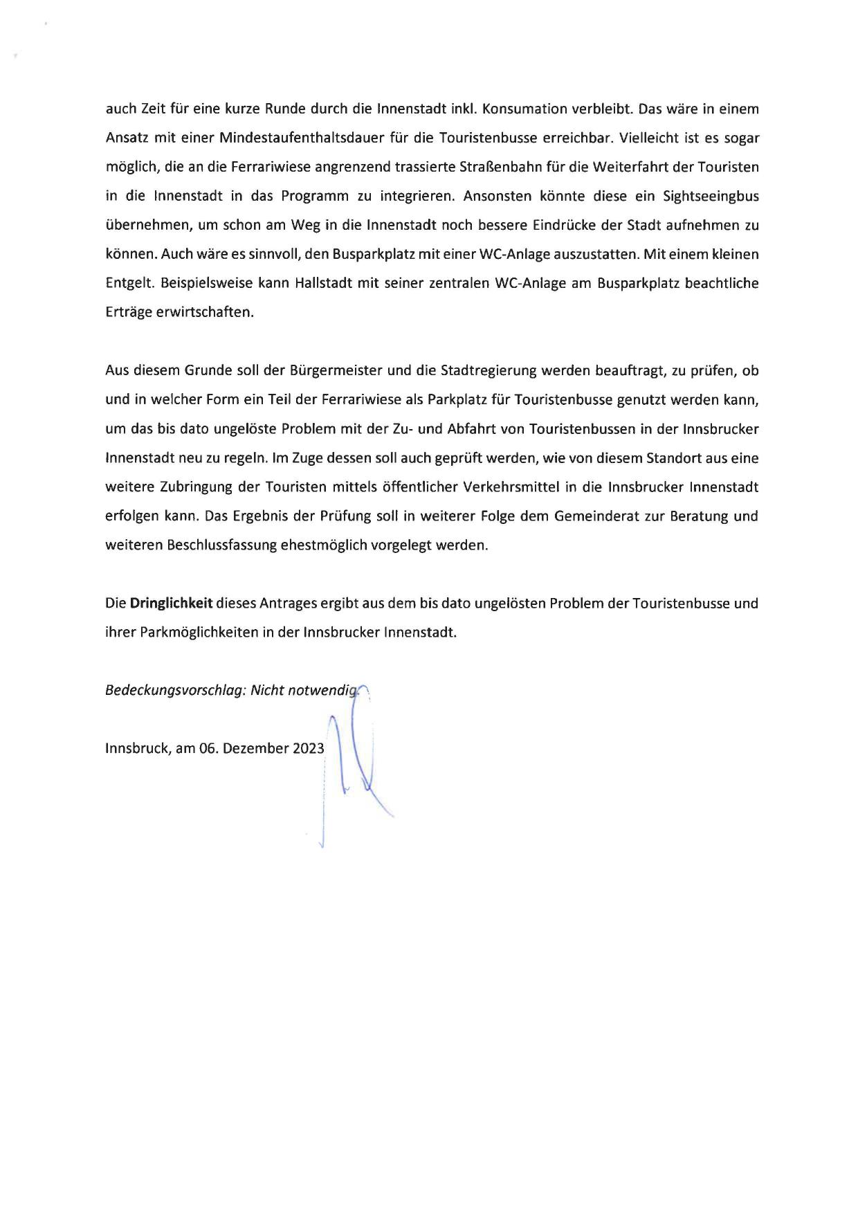 Die Dringlichkeit dieses Antrages ergibt aus dem bis dato ungelösten Problem der Touristenbusse und