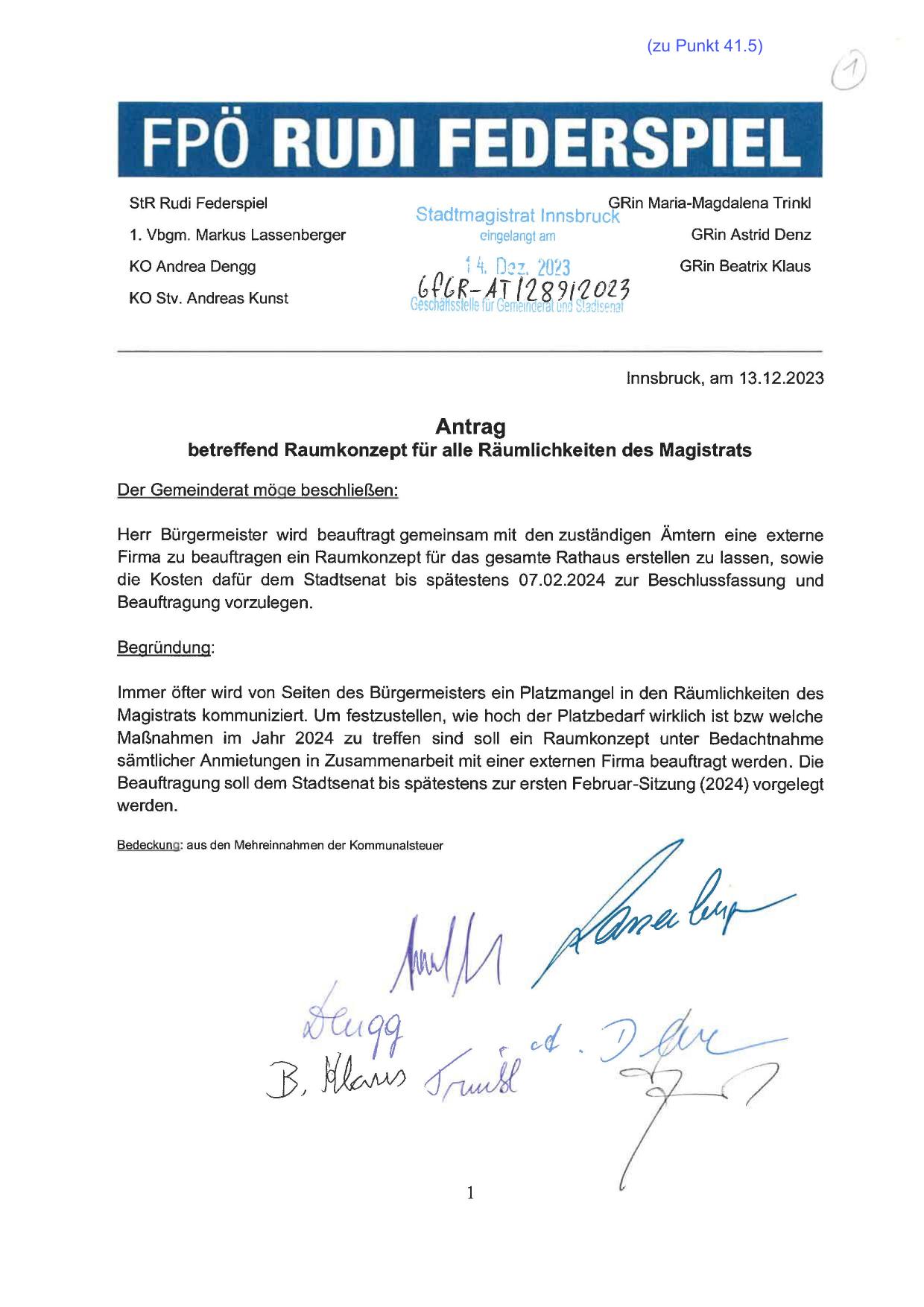 betreffend Raumkonzept für alle Räumlichkeiten des Magistrats
