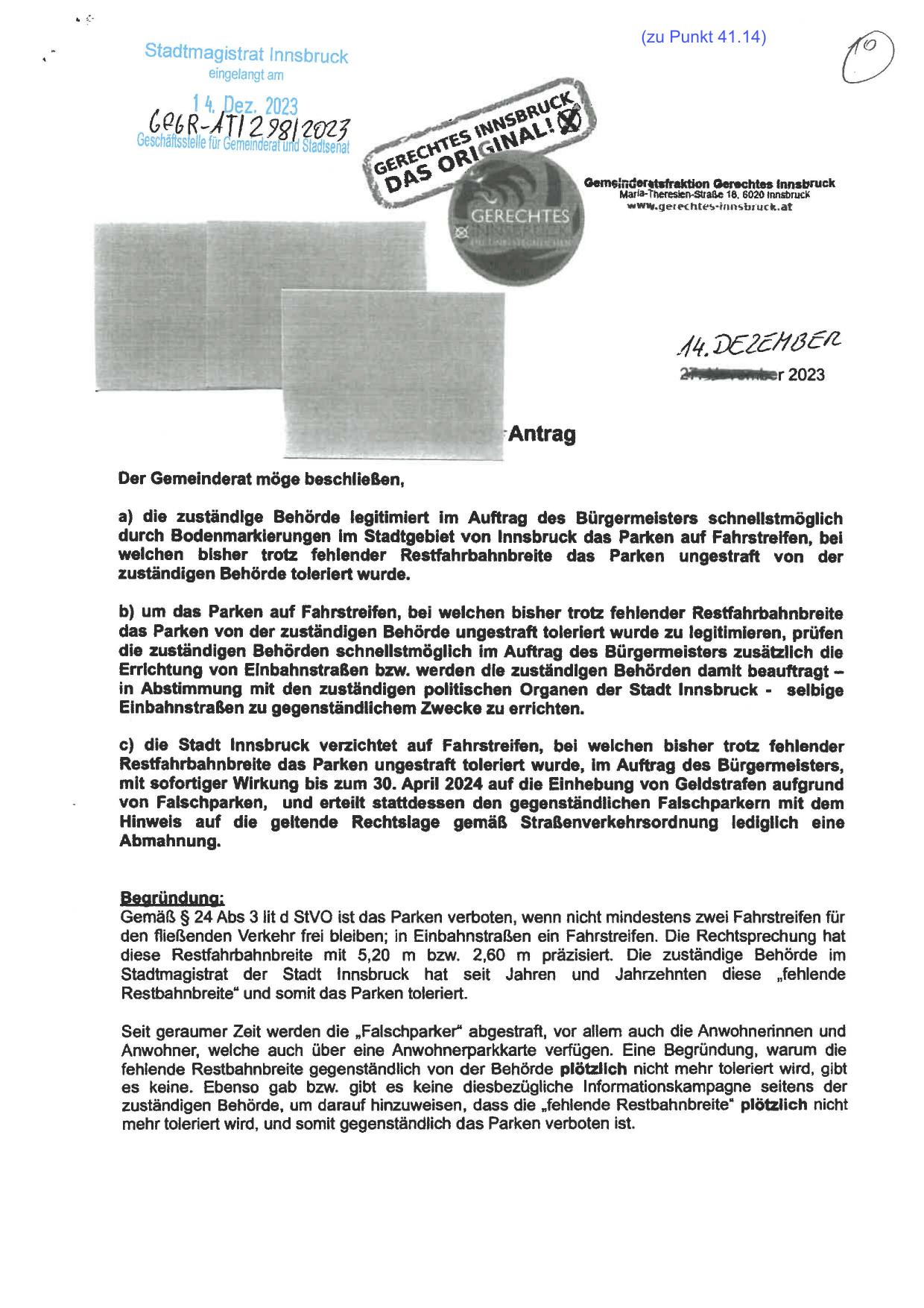 Stadtmagistrat der Stadt Innsbruck hat seit Jahren und Jahrzehnten diese „fehlende