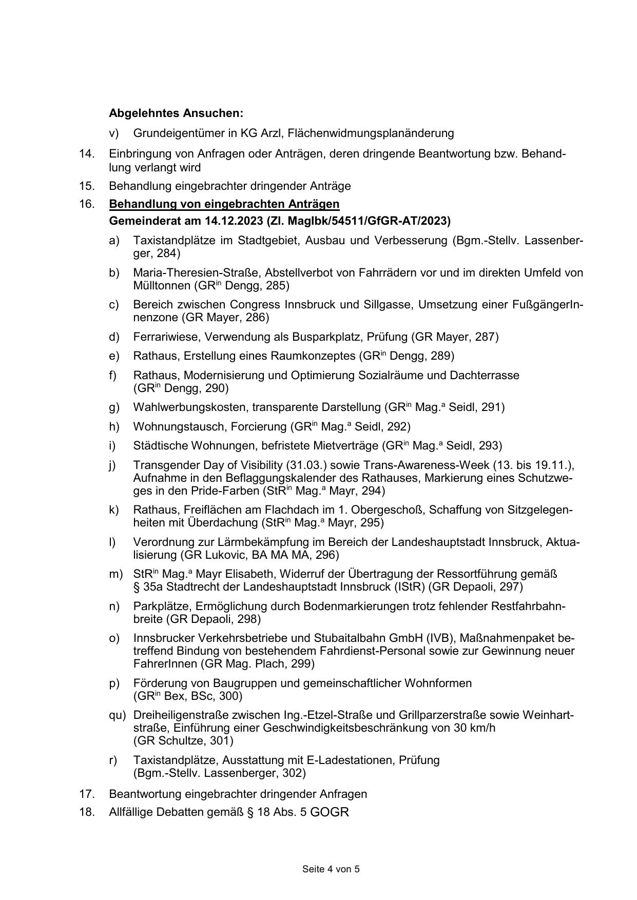 Gemeinderat am 14.12.2023 (Zl. MagIbk/54511/GfGR-AT/2023)