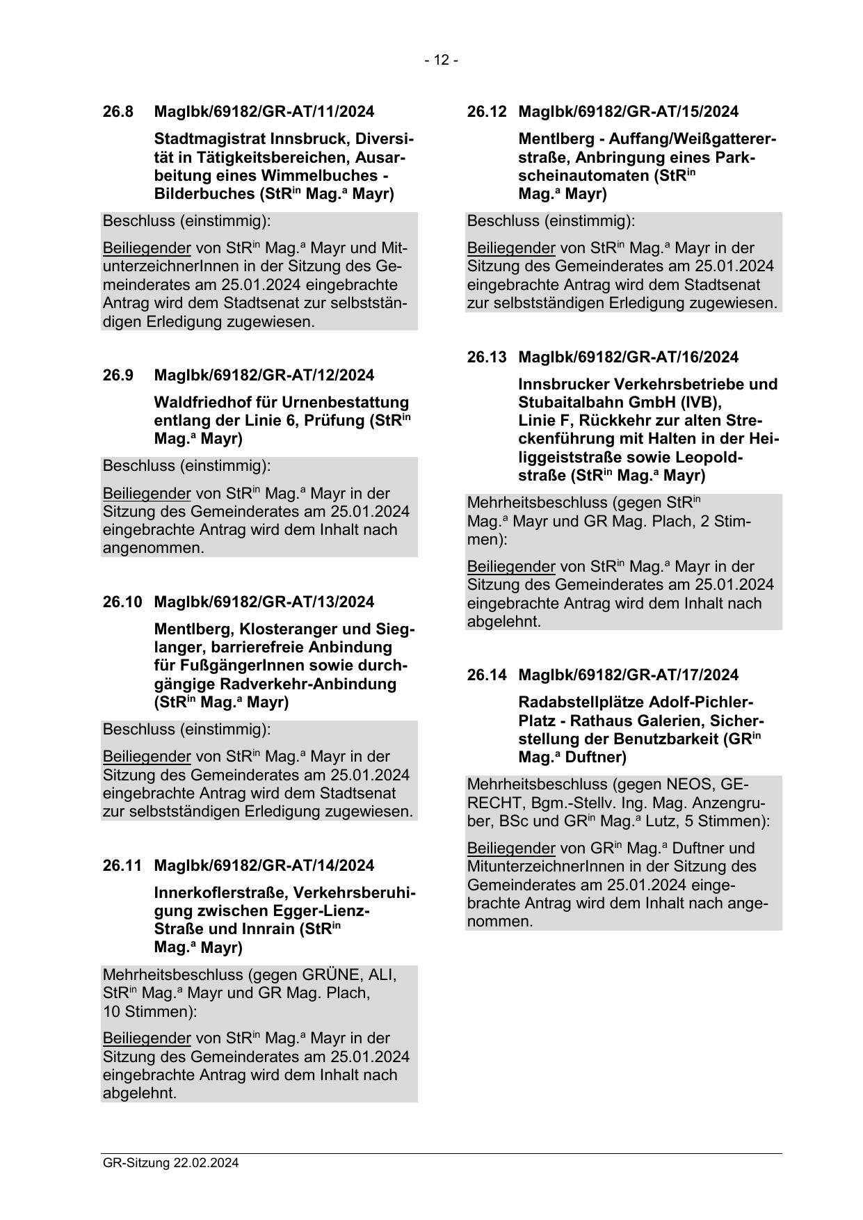 Beiliegender von StR Mag. Mayr und MitunterzeichnerInnen in der Sitzung des Gemeinderates am 25.01.2024 eingebrachte