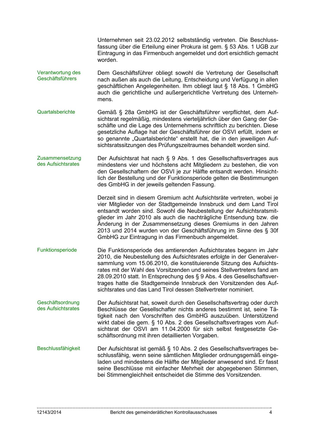 28.09.2010 statt. In Entsprechung des § 9 Abs. 4 des Gesellschaftsvertrages hatte die Stadtgemeinde Innsbruck den Vorsitzenden des Aufsichtsrates und das Land Tirol dessen Stellvertreter nominiert.