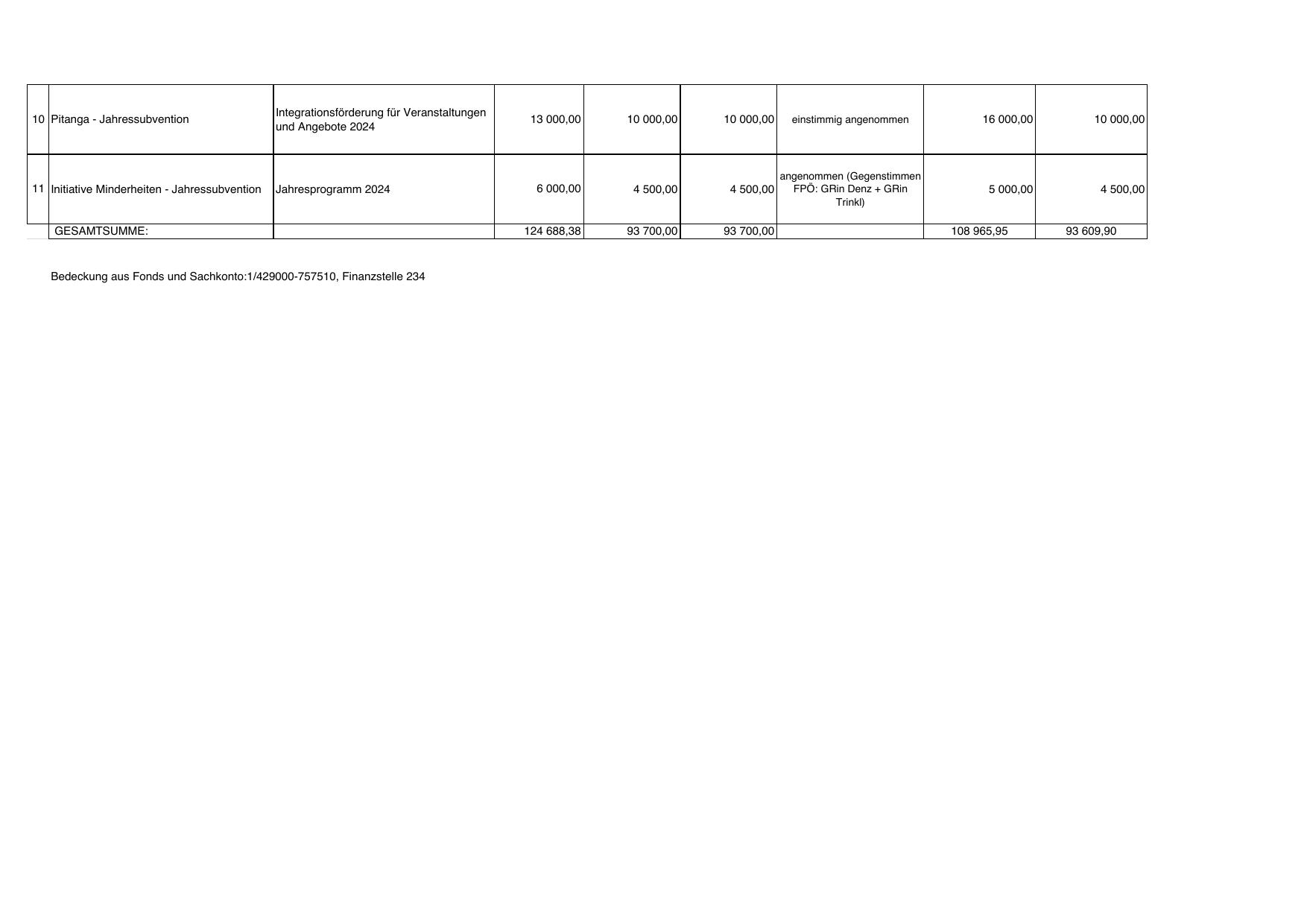 Bedeckung aus Fonds und Sachkonto:1/429000-757510, Finanzstelle 234
