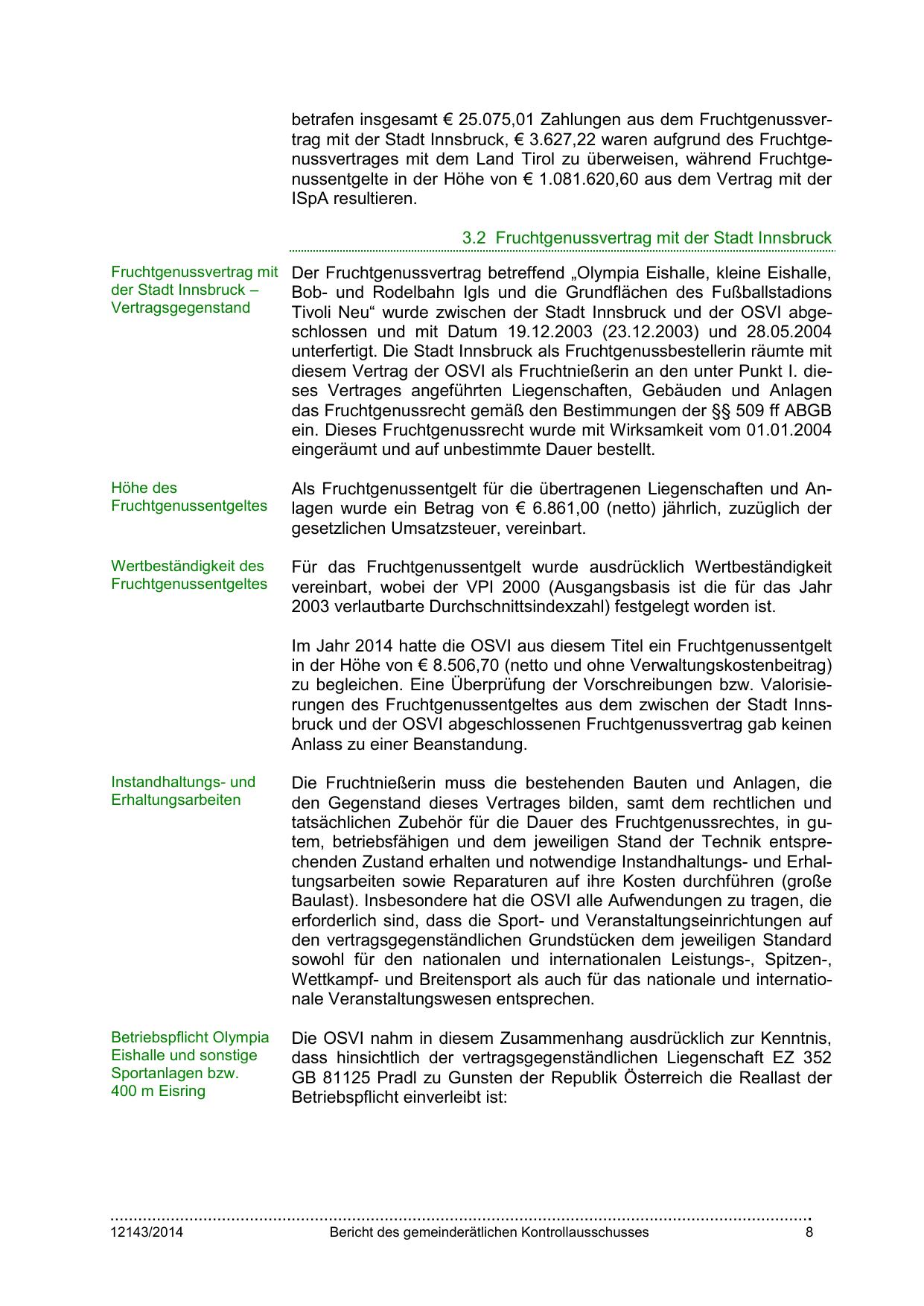 3.2 Fruchtgenussvertrag mit der Stadt Innsbruck
