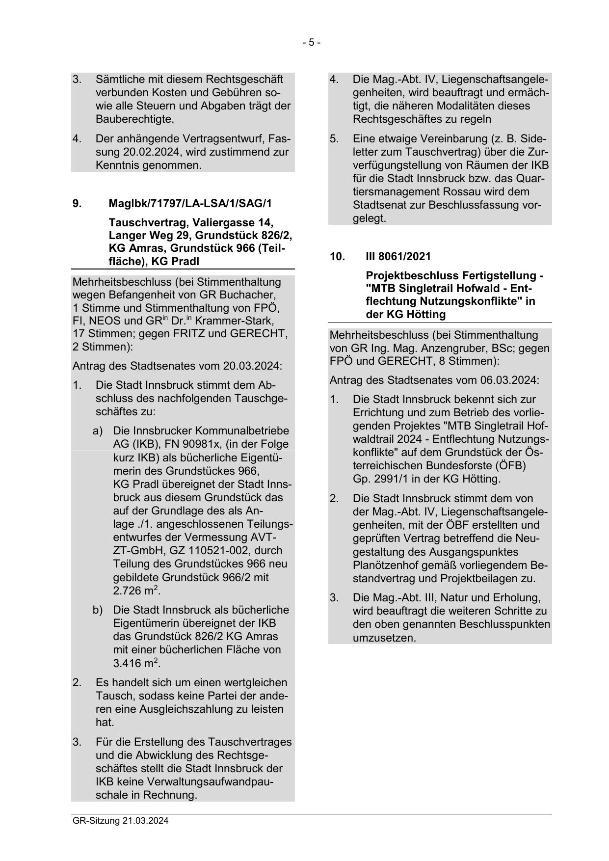 Die Stadt Innsbruck stimmt dem Abschluss des nachfolgenden Tauschgeschäftes zu: