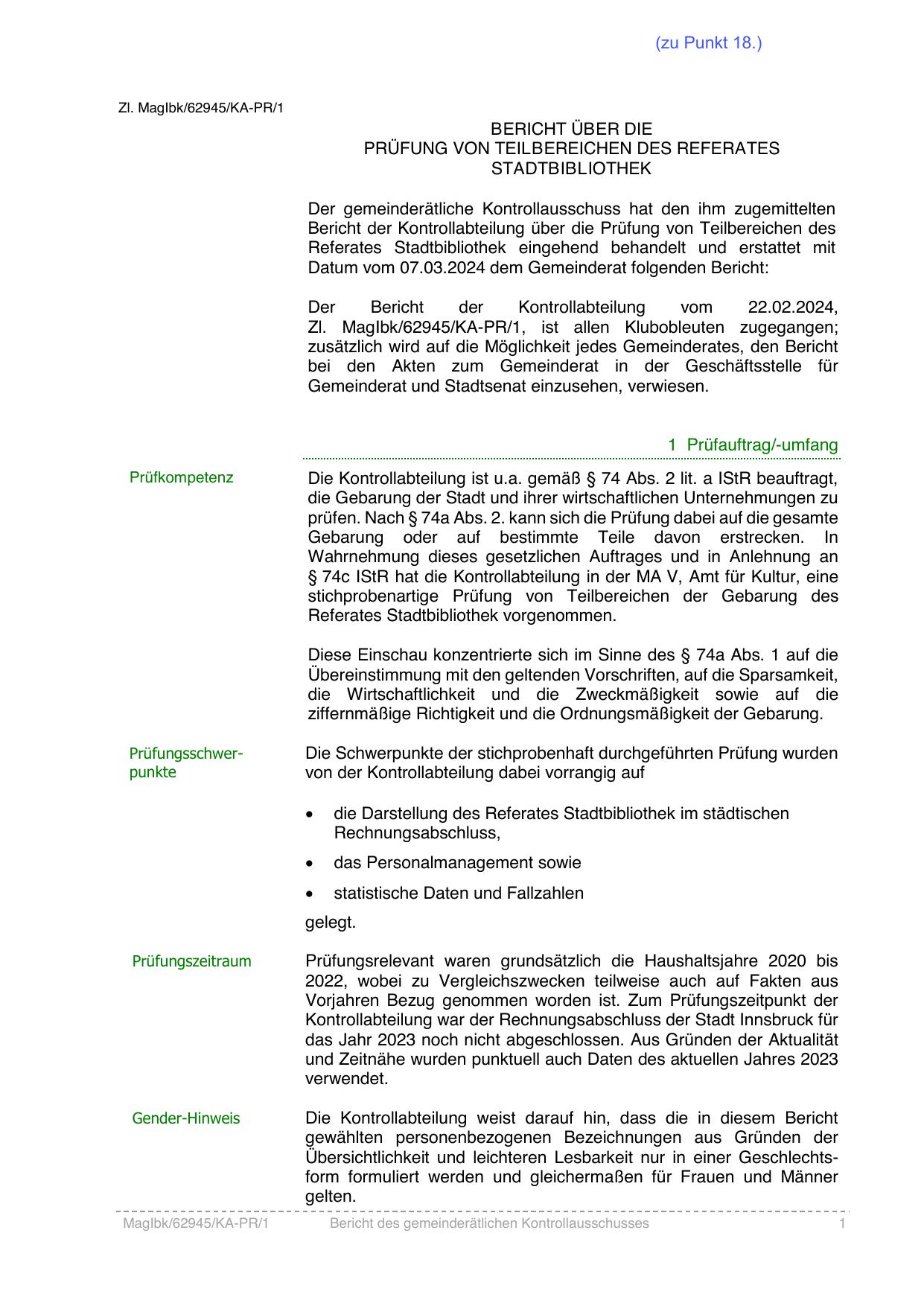 zusätzlich wird auf die Möglichkeit jedes Gemeinderates, den Bericht
