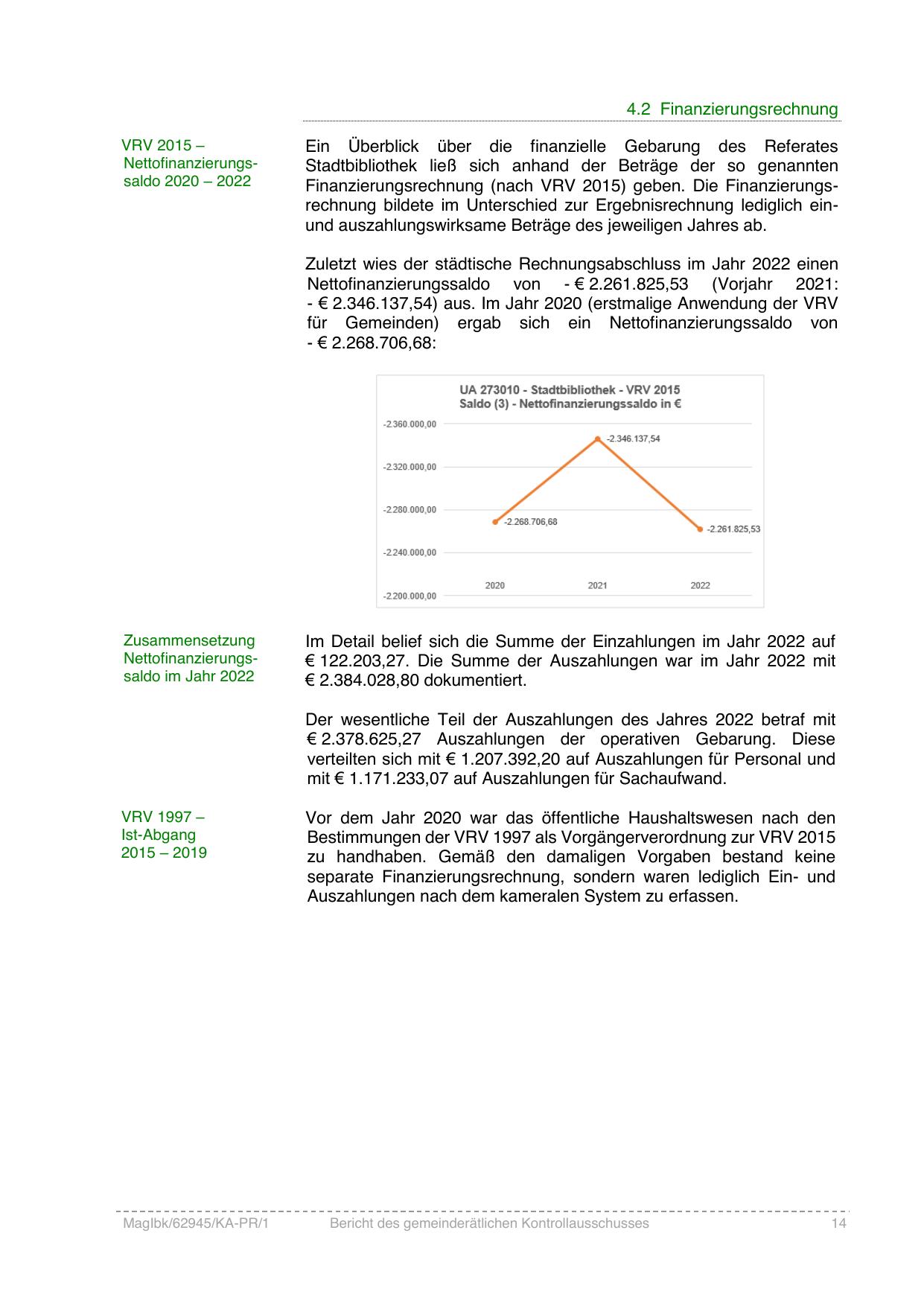 Nettofinanzierungssaldo von - € 2.261.825,53 (Vorjahr 2021: