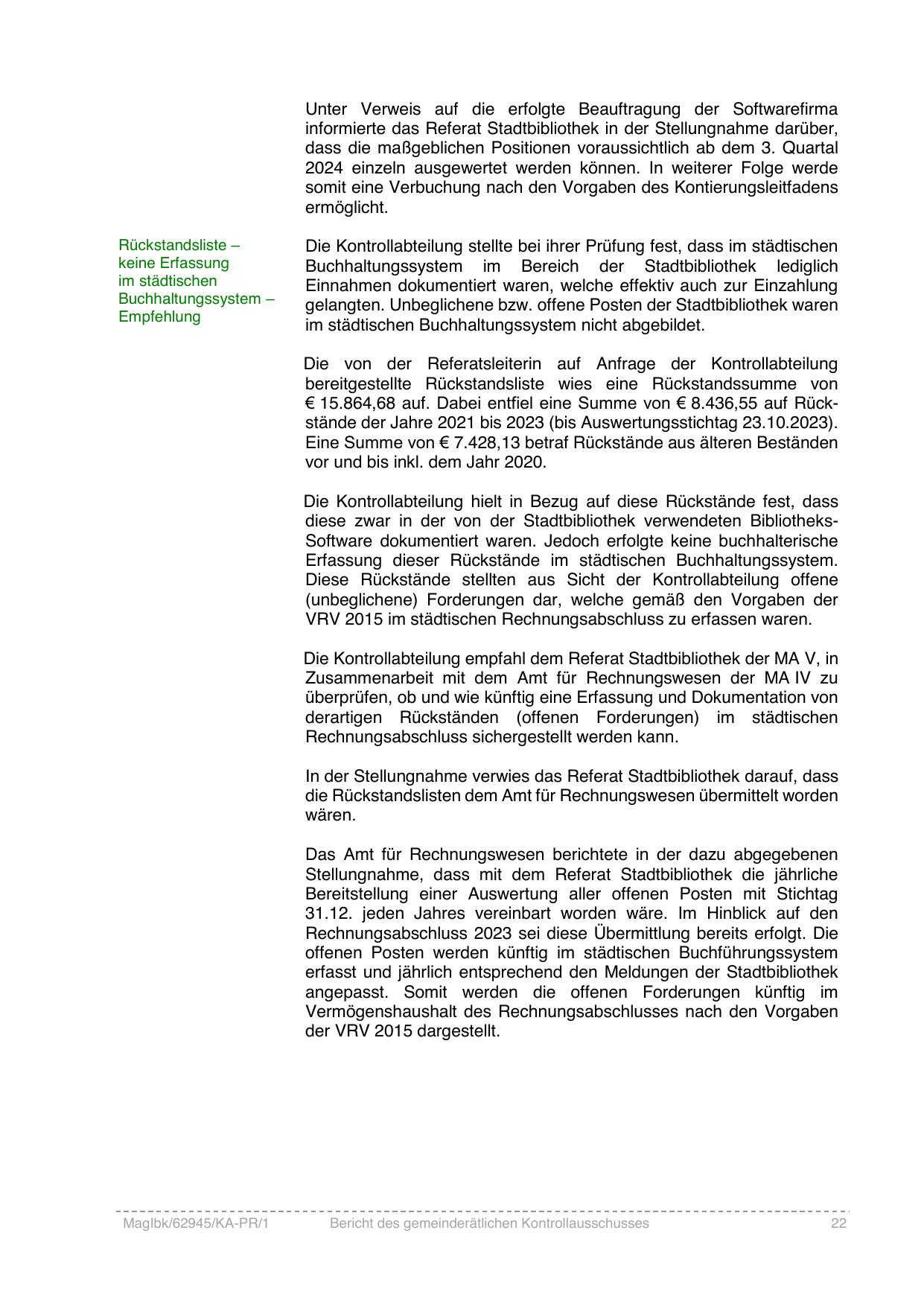 Buchhaltungssystem im Bereich der Stadtbibliothek lediglich