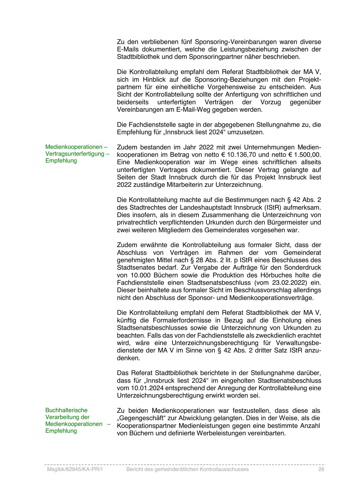 Zudem bestanden im Jahr 2022 mit zwei Unternehmungen Medienkooperationen im Betrag von netto € 10.136,70 und netto € 1.500,00.