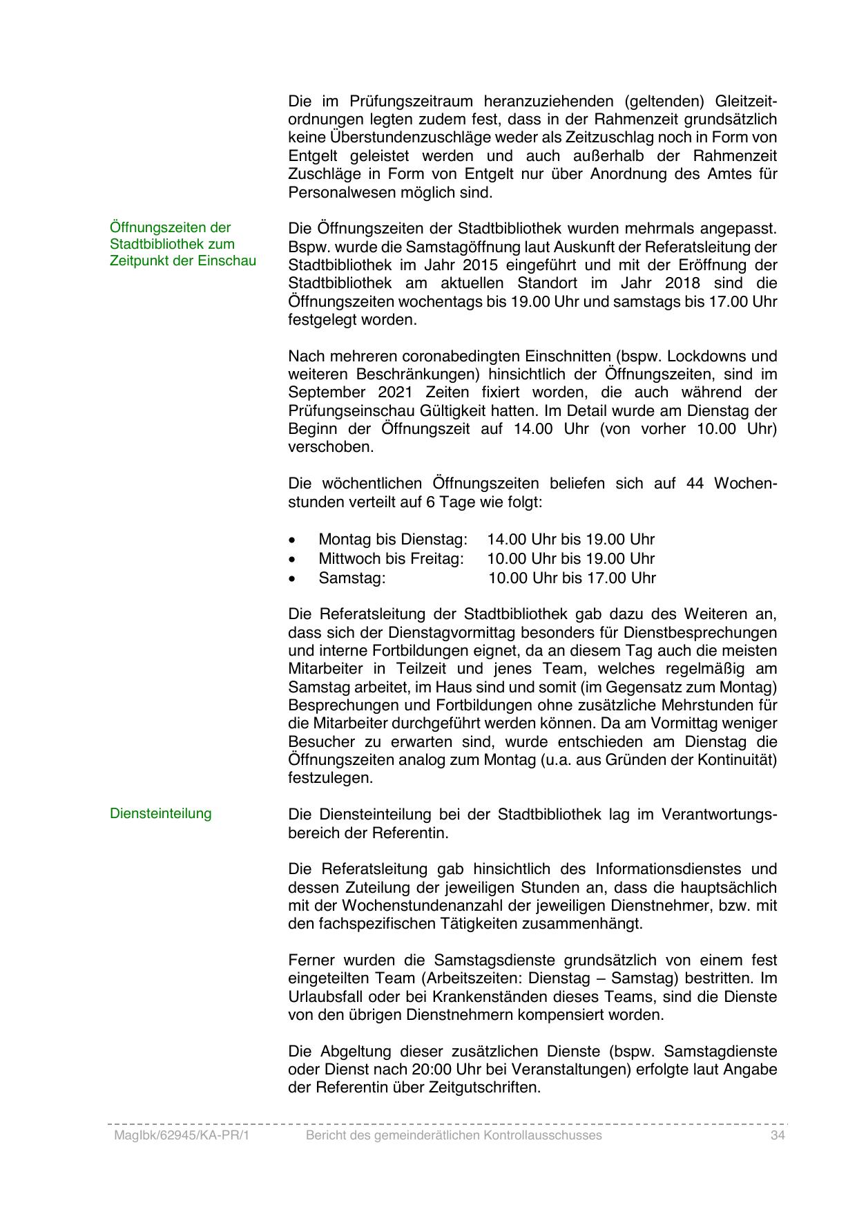 Bspw. wurde die Samstagöffnung laut Auskunft der Referatsleitung der