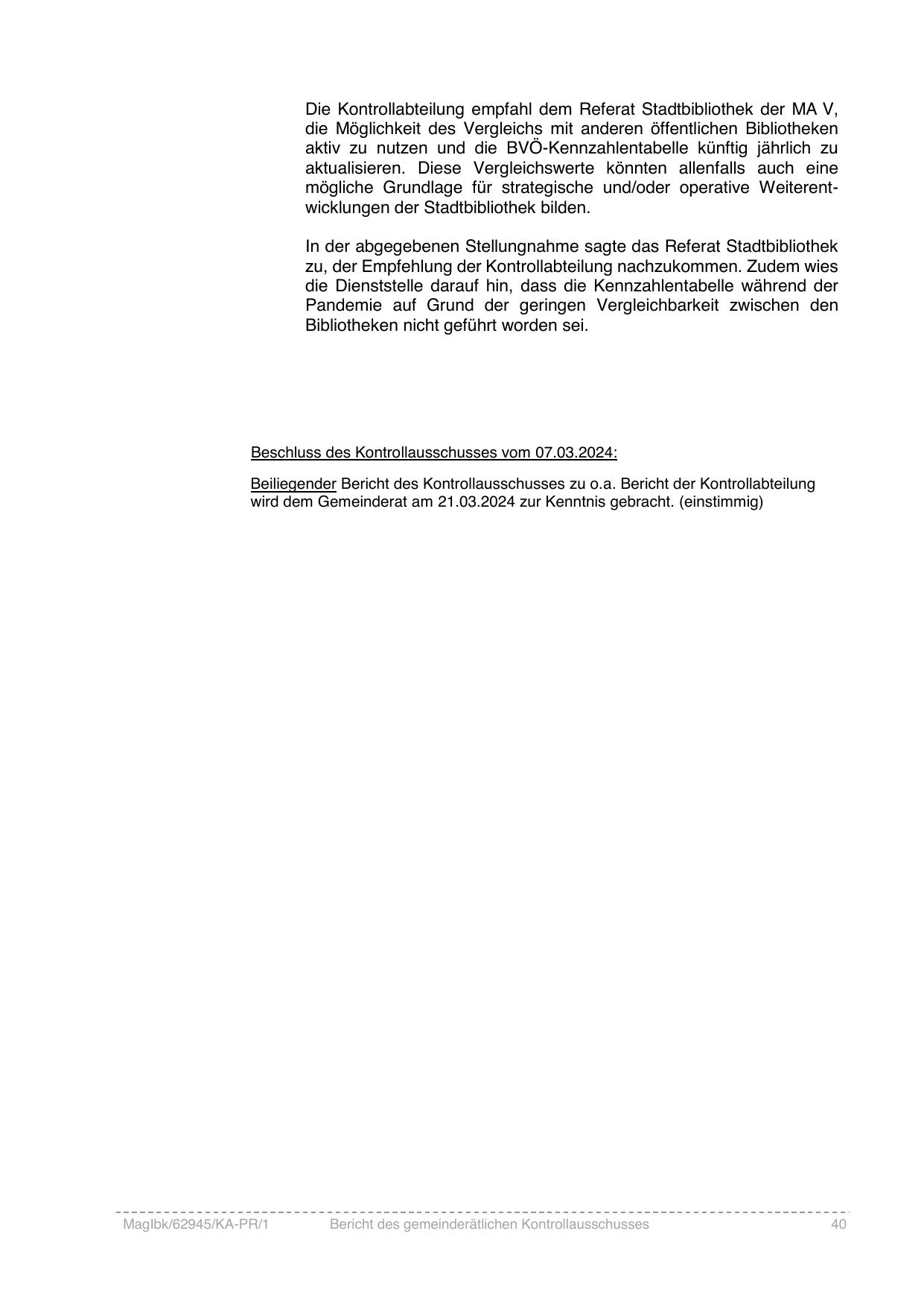 Beschluss des Kontrollausschusses vom 07.03.2024: