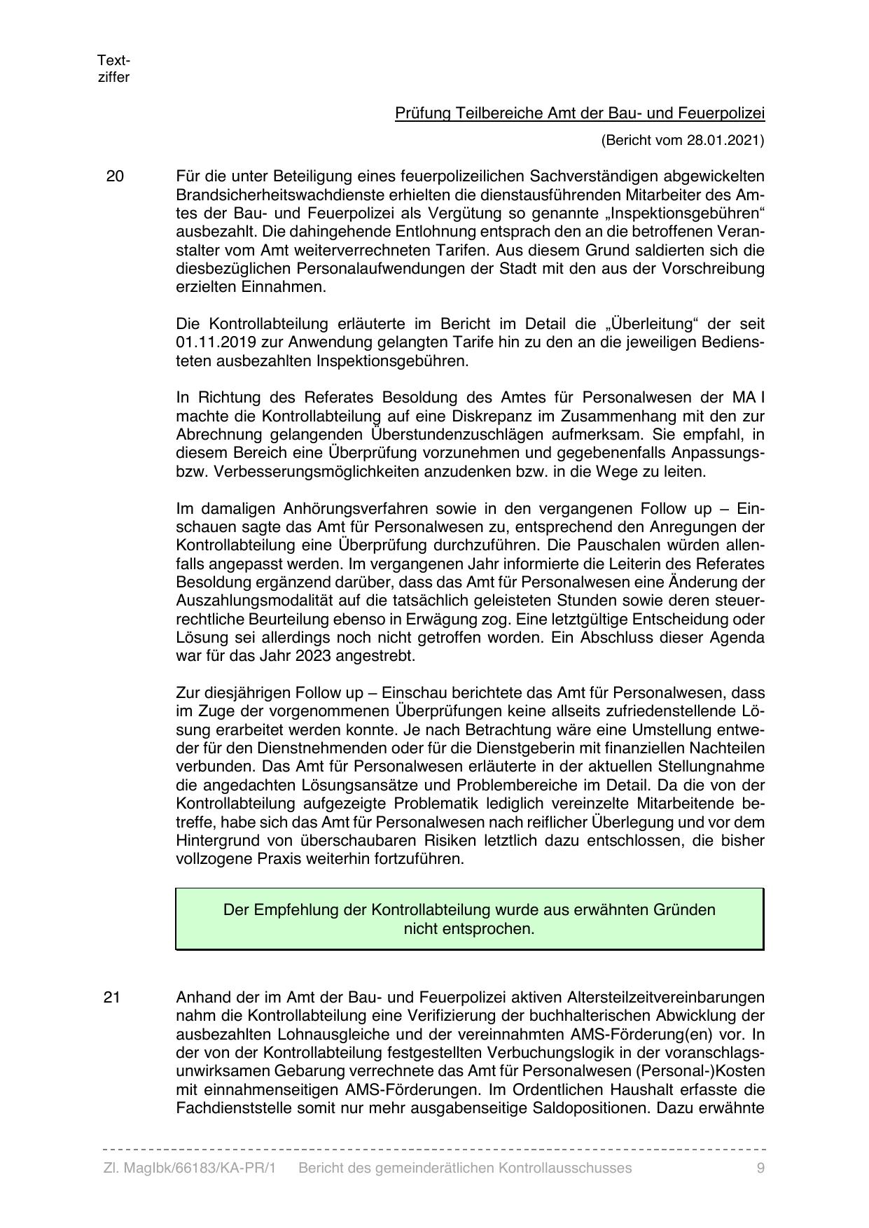 Der Empfehlung der Kontrollabteilung wurde aus erwähnten Gründen