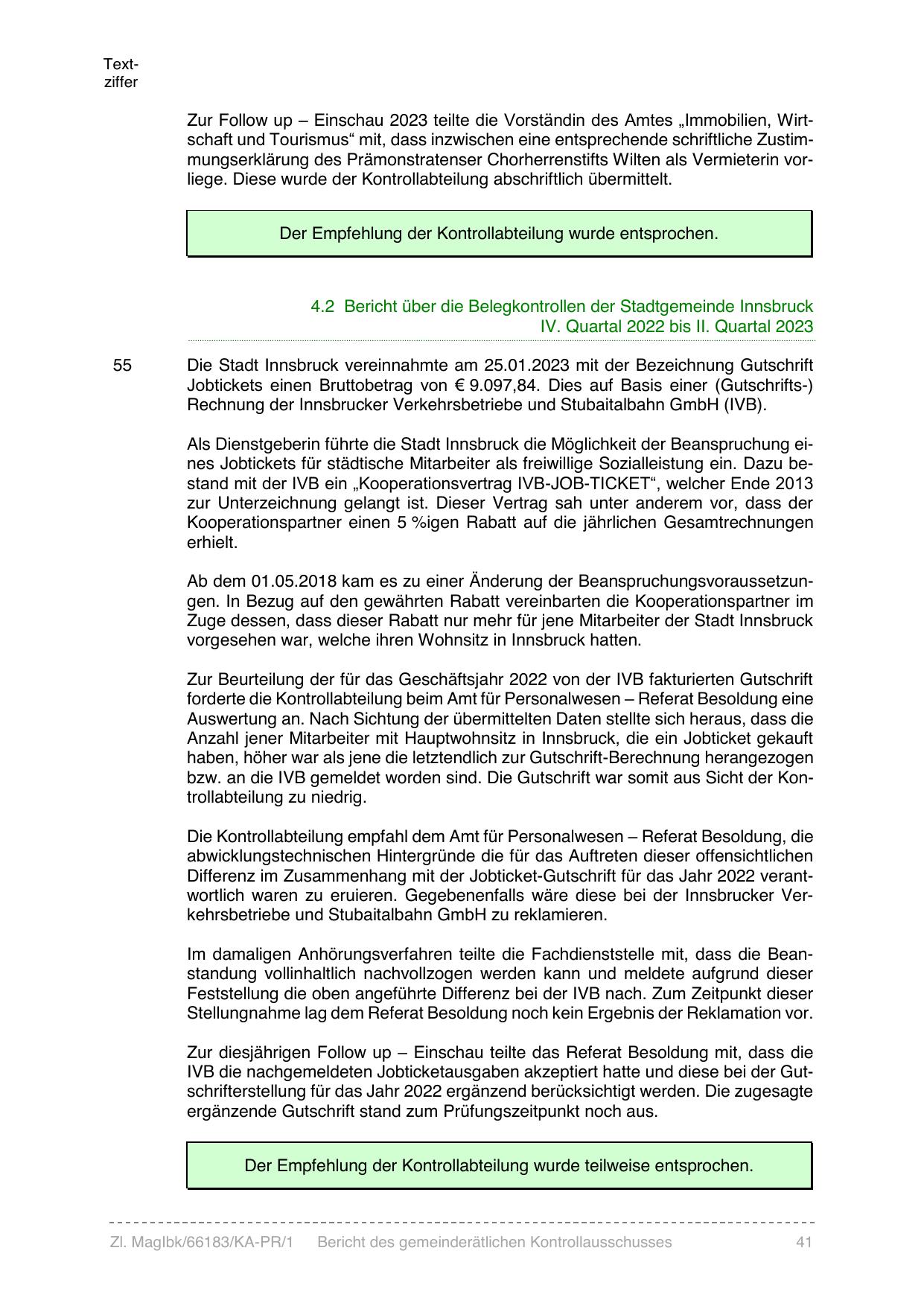 4.2 Bericht über die Belegkontrollen der Stadtgemeinde Innsbruck