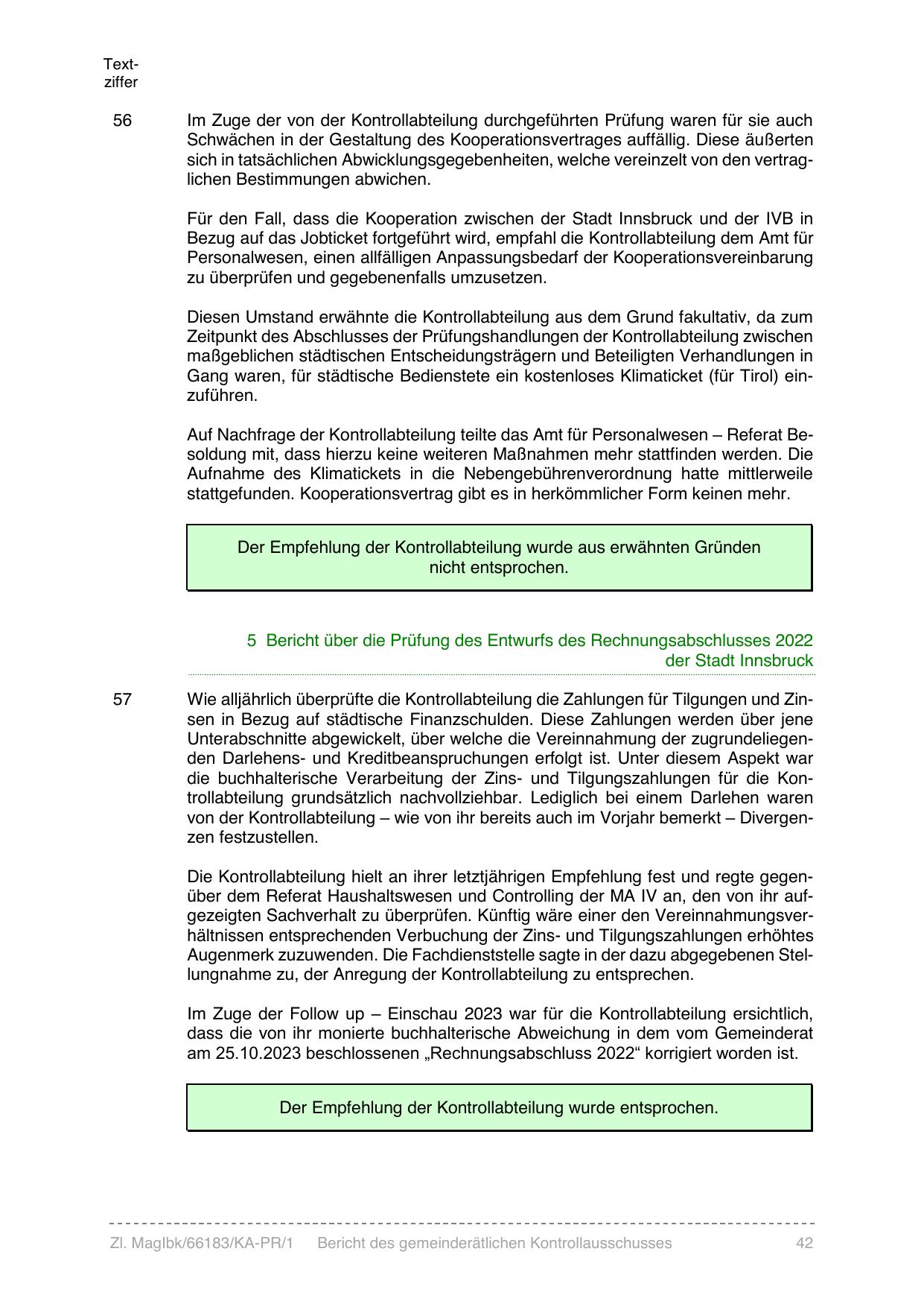 5 Bericht über die Prüfung des Entwurfs des Rechnungsabschlusses 2022