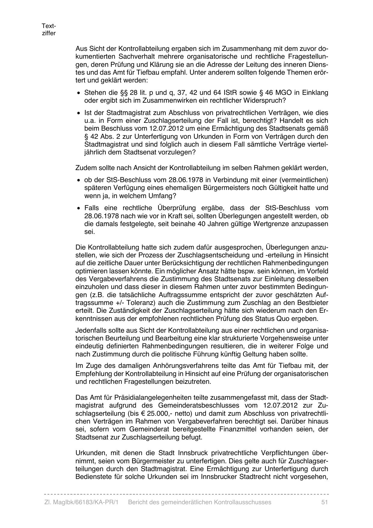 erteilt. Die Zuständigkeit der Zuschlagserteilung hätte sich wiederum nach den Erkenntnissen aus der empfohlenen rechtlichen Prüfung des Status Quo ergeben.