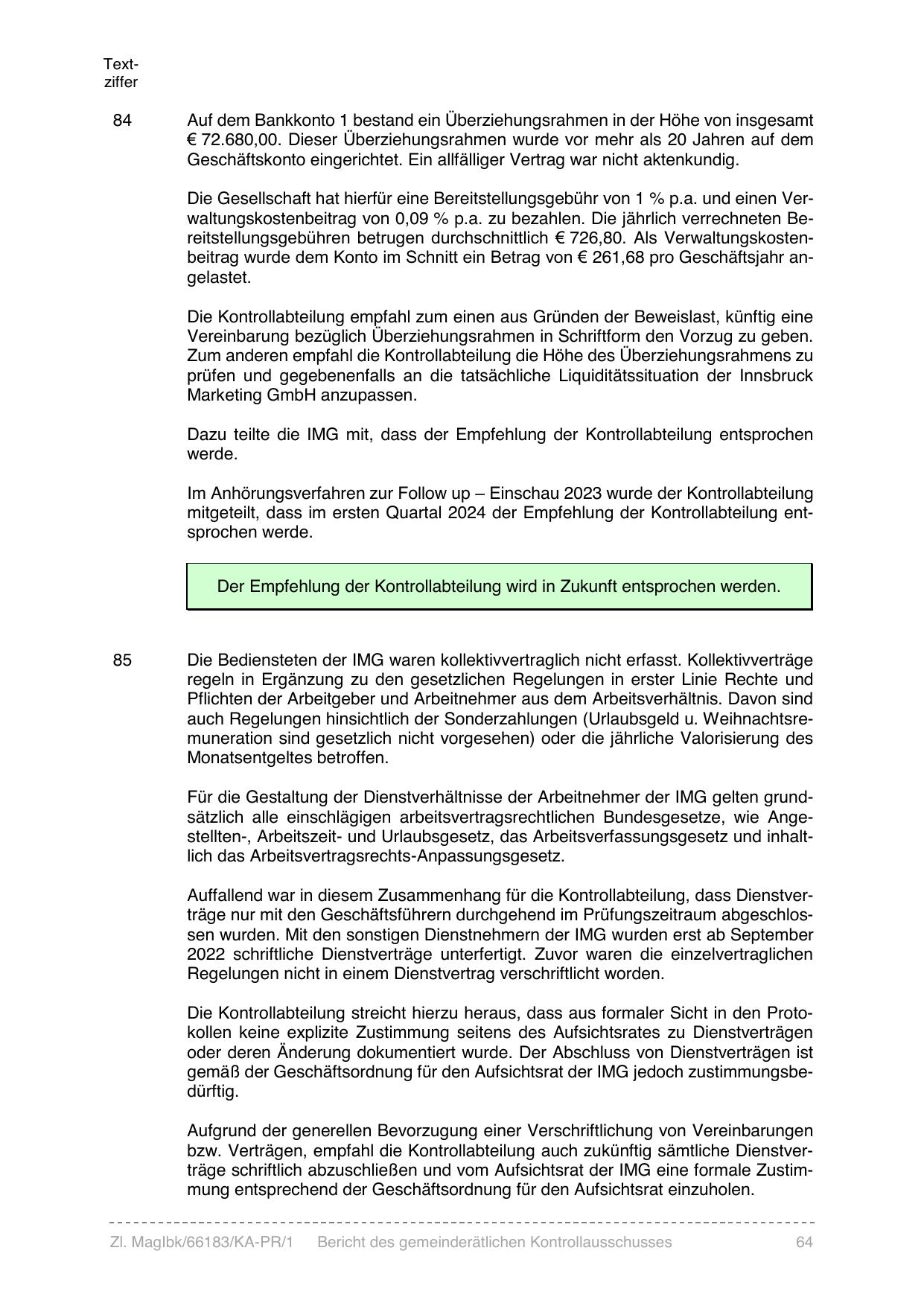 bzw. Verträgen, empfahl die Kontrollabteilung auch zukünftig sämtliche Dienstverträge schriftlich abzuschließen und vom Aufsichtsrat der IMG eine formale Zustimmung entsprechend der Geschäftsordnung für den Aufsichtsrat einzuholen.