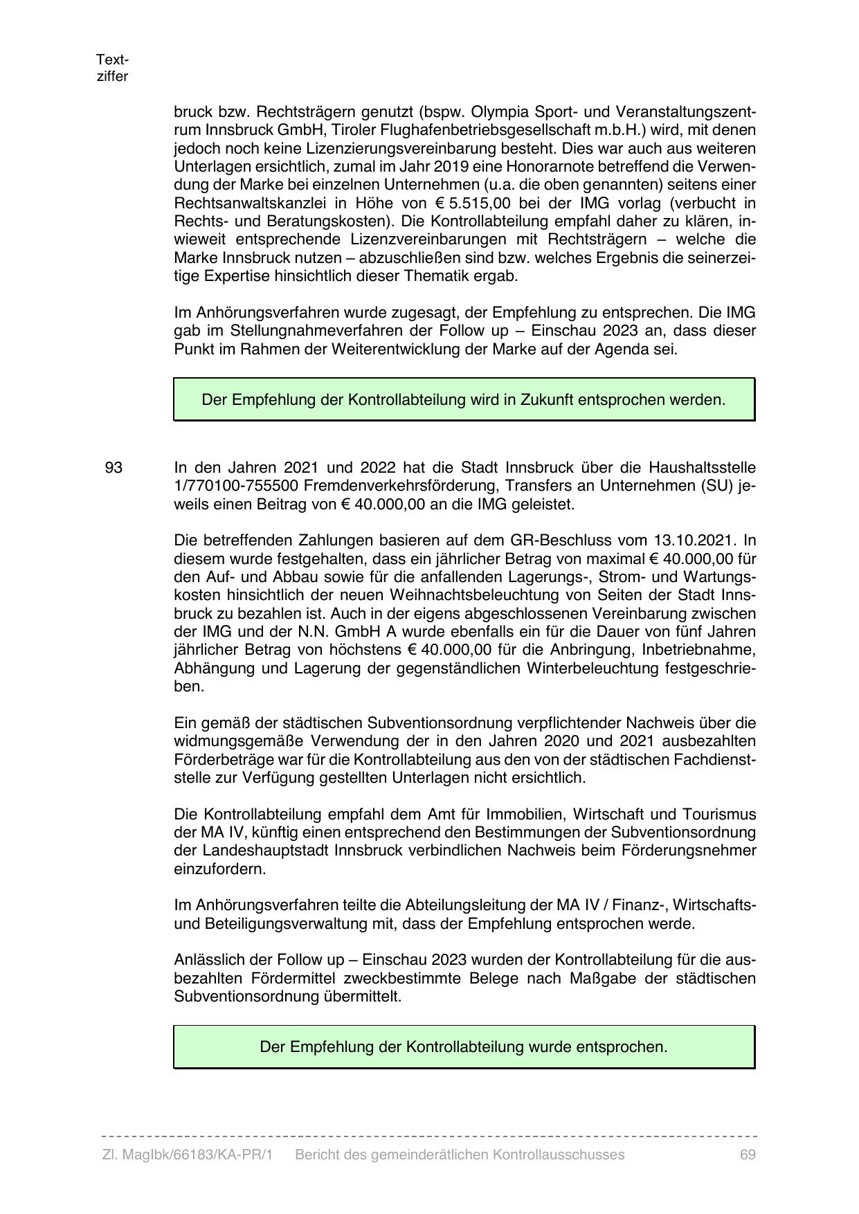 Marke Innsbruck nutzen – abzuschließen sind bzw. welches Ergebnis die seinerzeitige Expertise hinsichtlich dieser Thematik ergab.